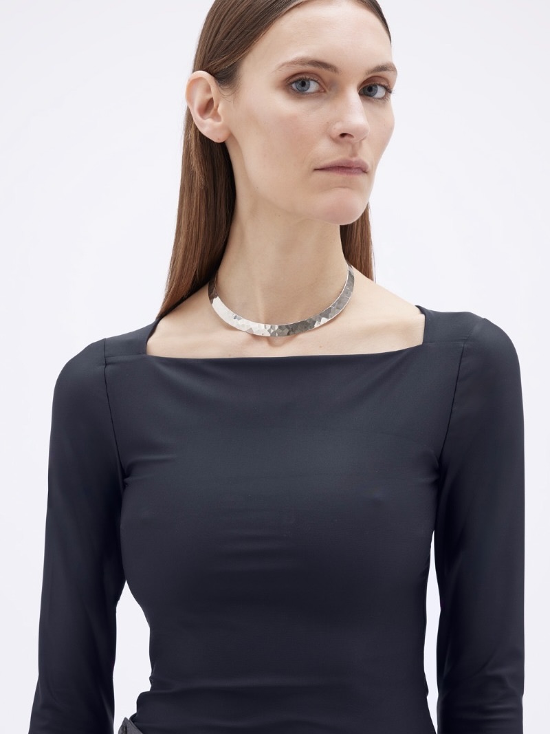 Denne jerseytoppen er en garderobe som har lange ermer og en klassisk rett hals for en tidløs look. Med sin vanlige passform tilbyr den både komfort og stil for hverdagsbruk.