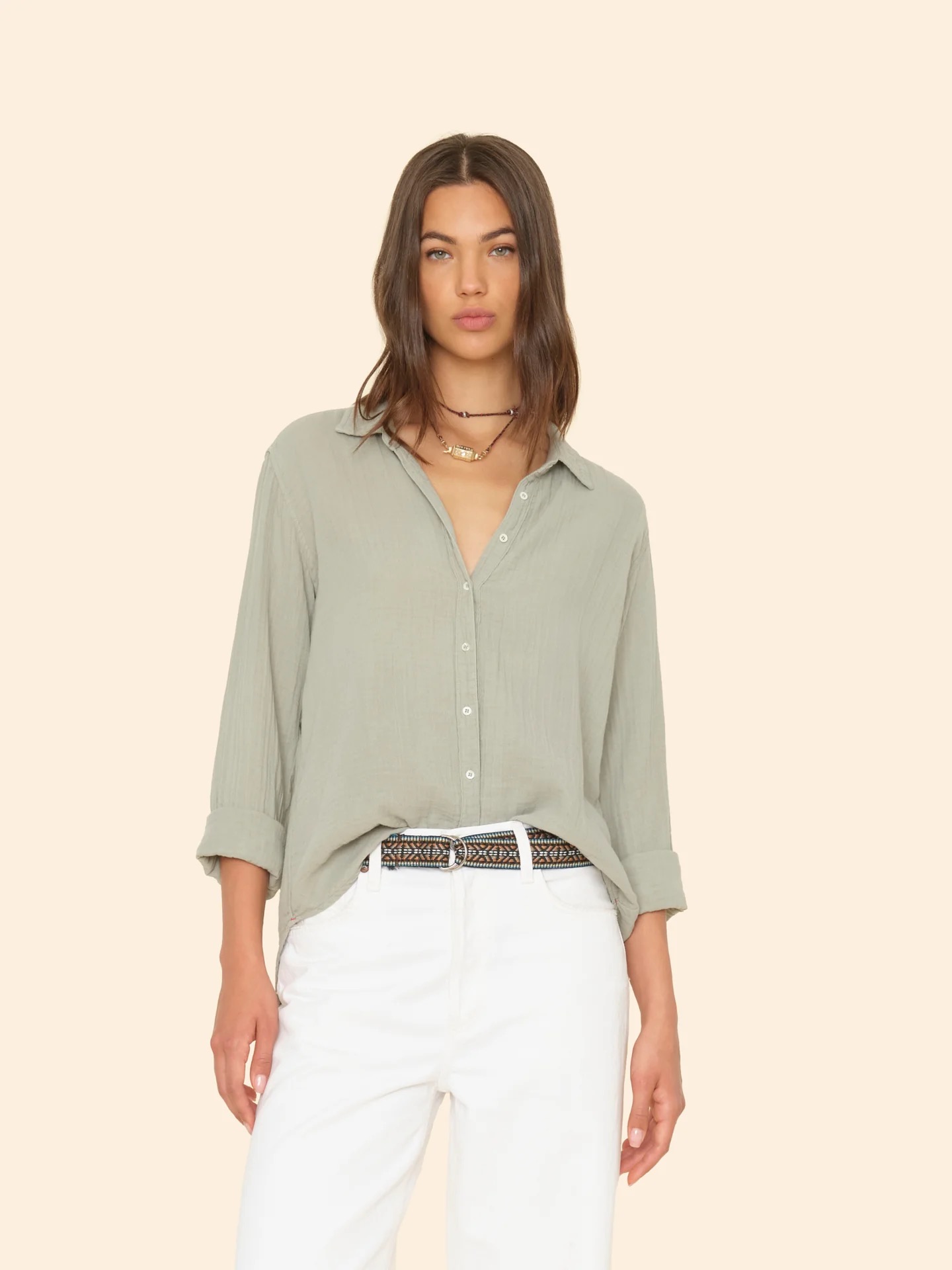 Aller nødvendigste. Scout er laget i Xirena vaskede dobbelsidige bomullsgasbind for en myk, lett krøllet følelse. Denne lette skjorten med knapper foran har en skjortehalekant og et bakstykke med boksfolder.