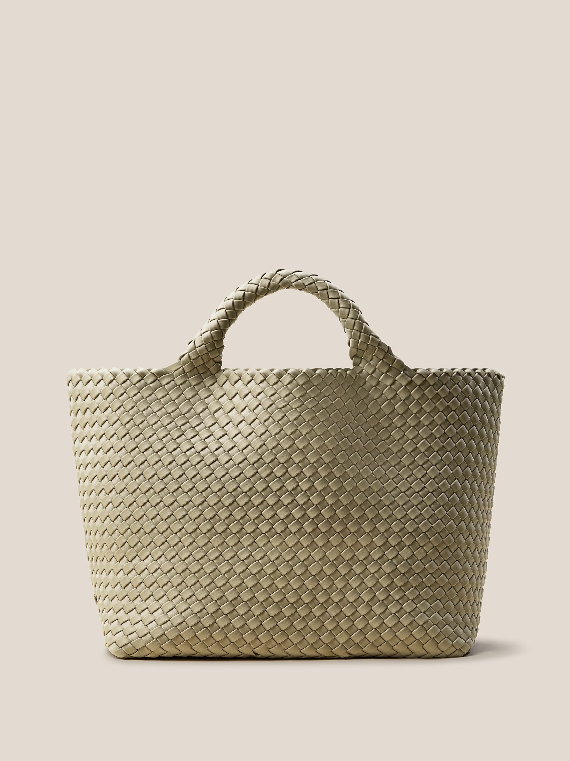 Vår bestselgende klassiske St. Barths Medium Tote er laget av håndvevde tråder av neopren. Bruk den medfølgende matchende vesken til å oppbevare det nødvendigste eller som en clutch for en kveld ute!