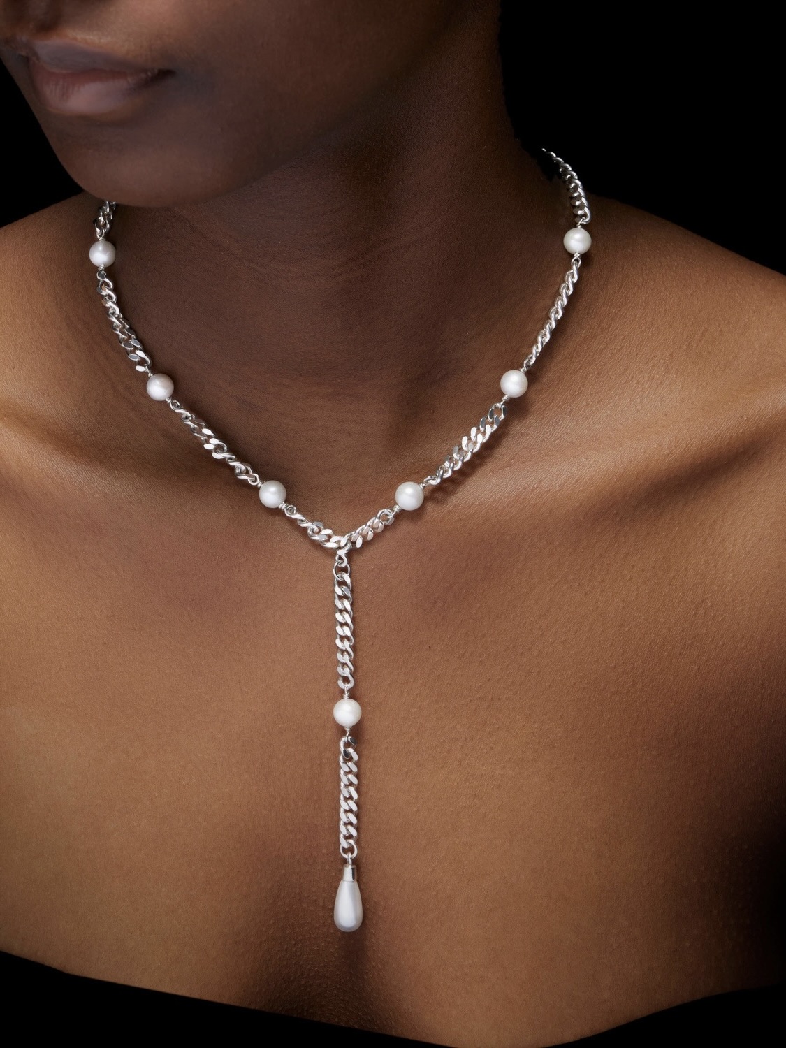 Renaissance Necklace Silver - Freshwater Pearls & Glass Pearl OS