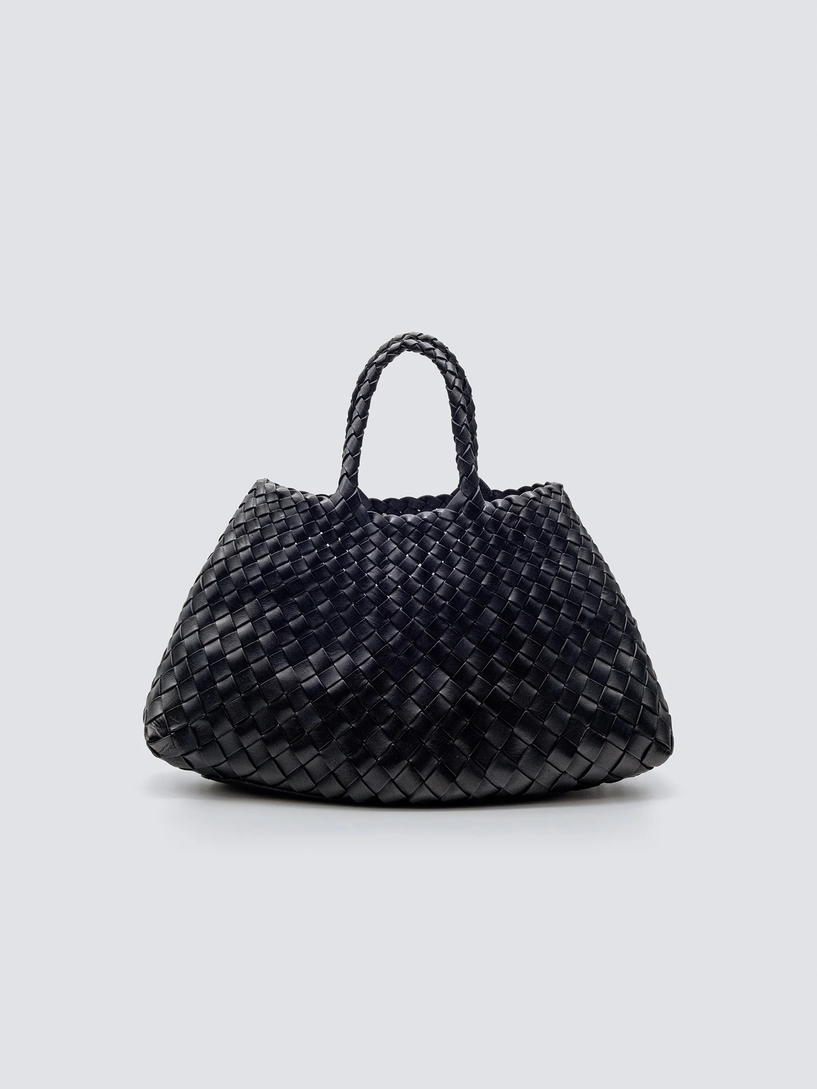 Santa Croce-vesken til Dragon Diffusion er laget av uregelmessige vevestropper i skinn som smalner mot kanten, og skaper en praktisk, men elegant form som er perfekt for å løpe rundt i byen – som tar antrekket ditt fra dag til natt. Santa Croce forblir tro mot tradisjonelle kurvvevingsteknikker, og kommer uforet og har en åpen topp.
