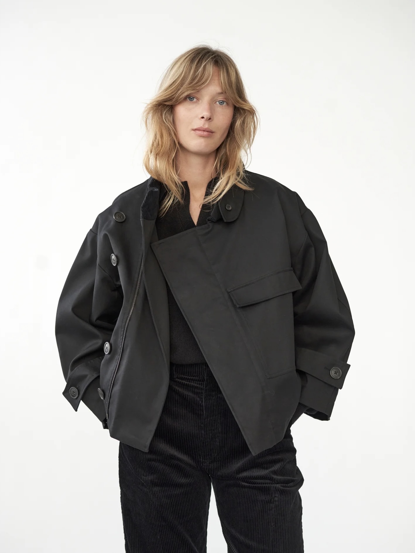 Jakke fra Af Agger i vannavstøtende bomullsstil. Den har en toveis glidelås av metall.