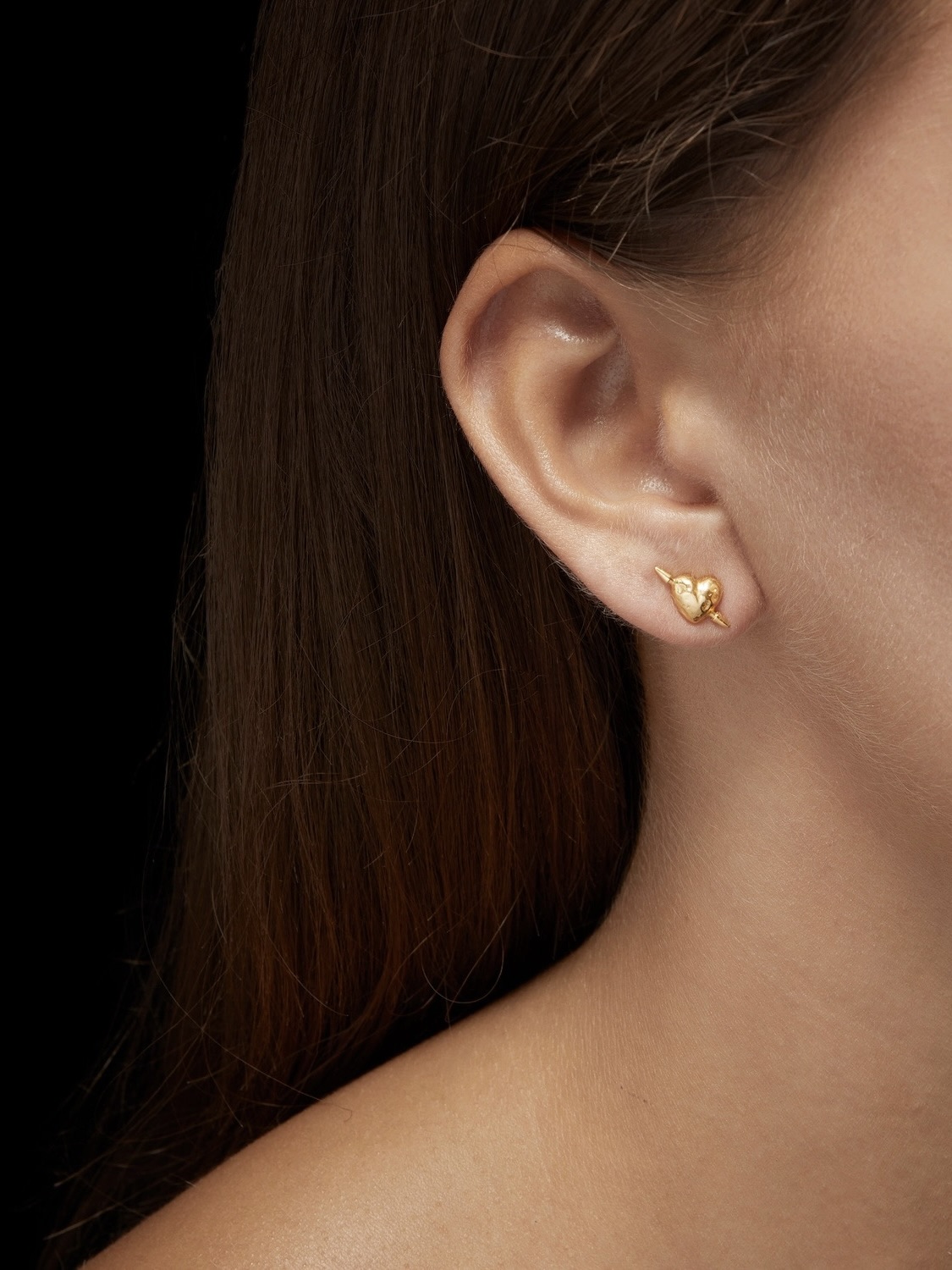 Tuvstarr's Heart Ear Stud Gold-plated Silver