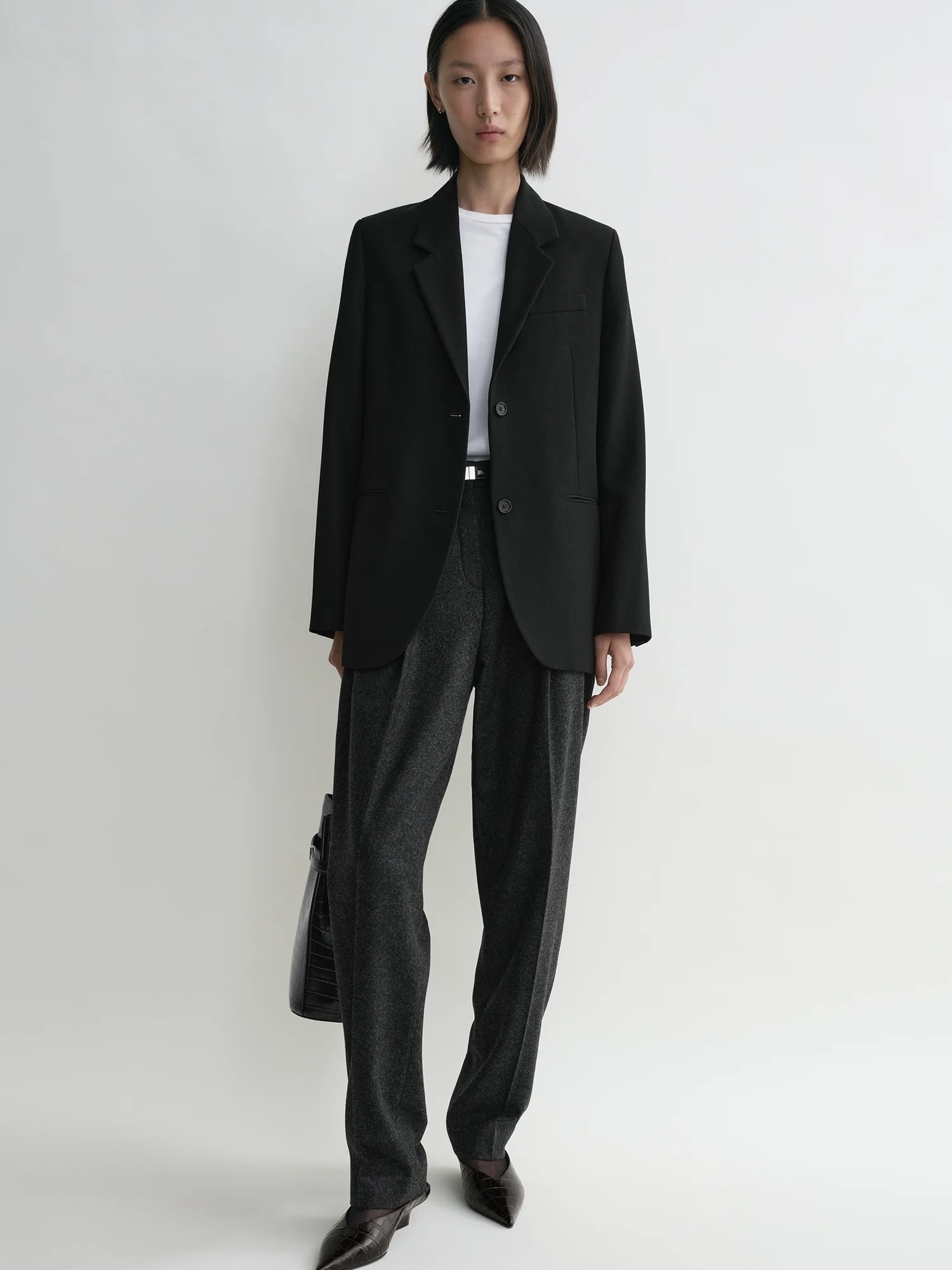 TOTEME dressjakke innrammet med en litt overdimensjonert, single-breasted silhuett inspirert av klassisk herreklær. Den er vevd av resirkulert polyester og sertifisert ullstoff med en ren drapering og er ferdig med tre lommer – pluss en praktisk innerlomme – og hel satengfôr. Fullfør en skreddersøm med de matchende buksene.