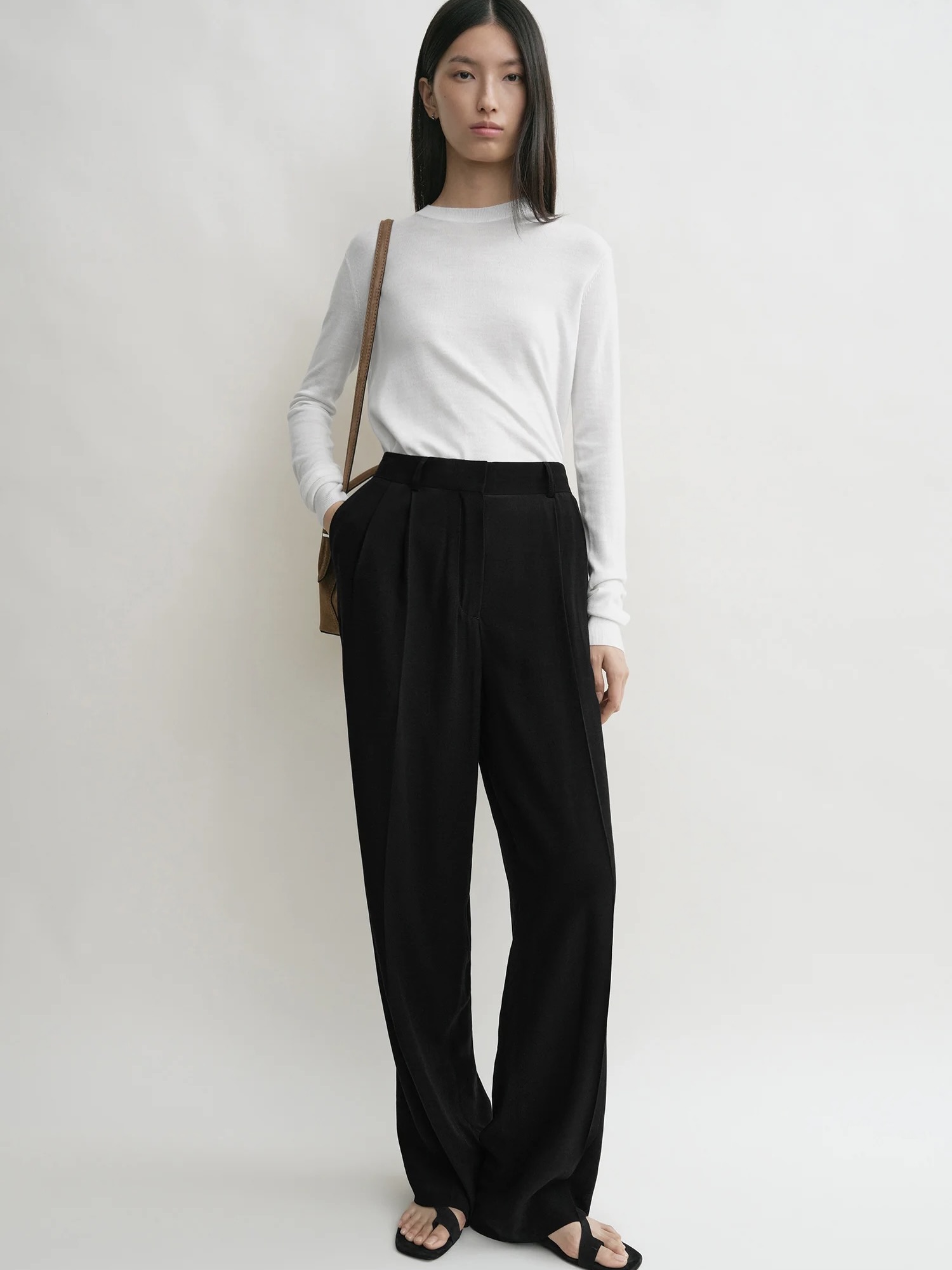 TOTEME dressbukser med en klassisk skreddersydd konstruksjon som draper seg uanstrengt nedover de rette bena. De er laget i Portugal, og har en strukturert linning med beltehemper, sidelommer bak og en glidelåsgylf.
