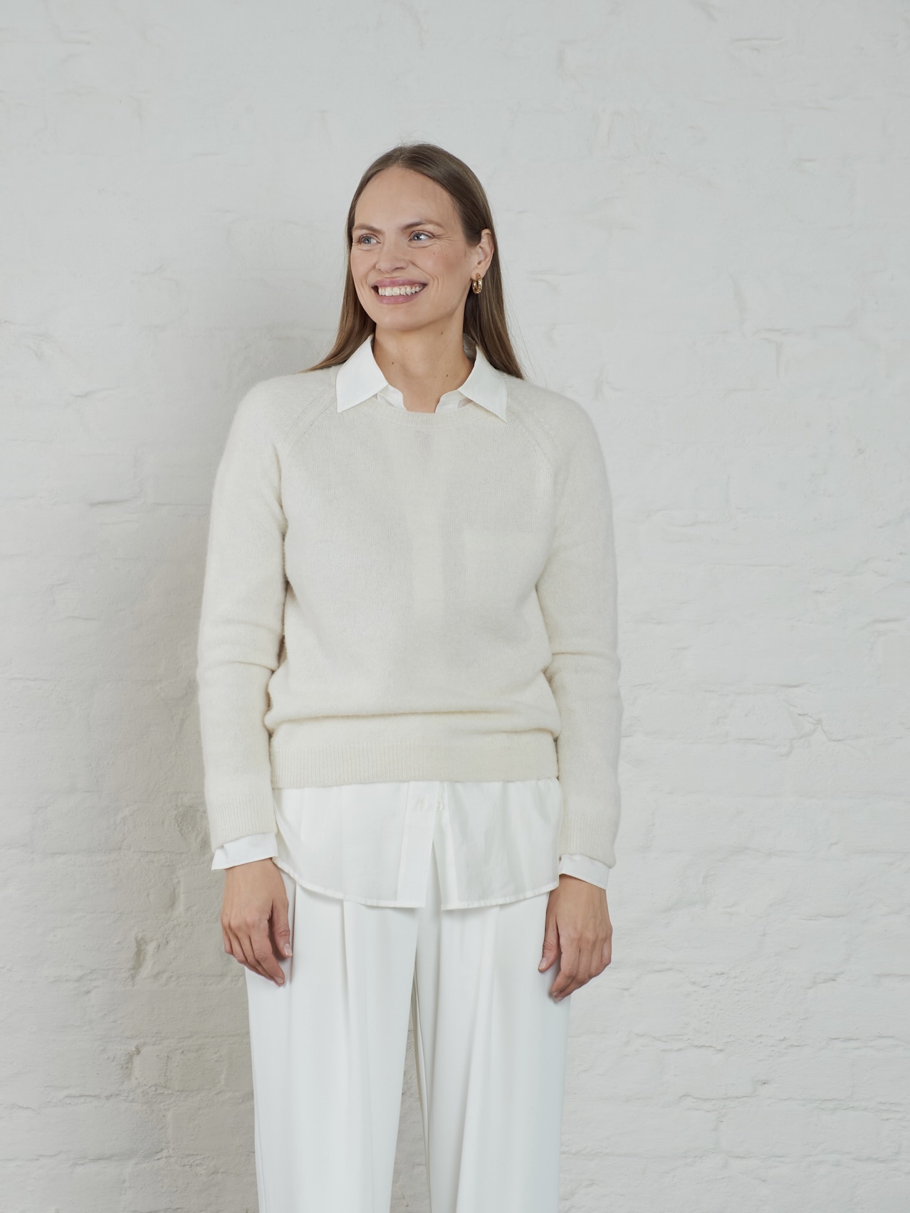 Allsidig og tidløs strikkegenser i en myk og slitesterk alpakkablanding. Med raglan skuldre, ribbestrikket hals, mansjetter og nederkant, kombinerer denne modellen klassisk design og moderne komfort. Genseren er en klassiker fra Arnie Says som passer perfekt til enhver anledning.