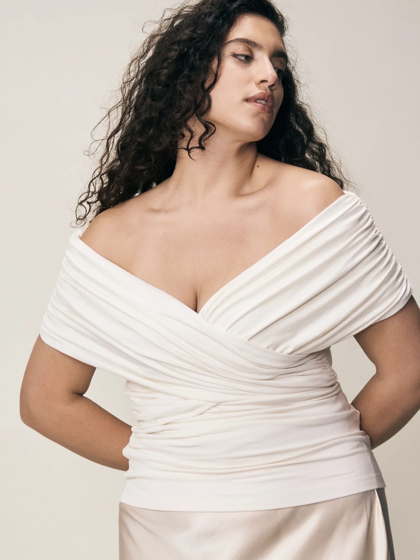 VIVEH Giada har et rynket, off-the-skulder snitt som skaper en vakker omslag over brystet, noe som gjør den til den perfekte kveldstoppen som også kan styles for dagen. Laget av Viveh sin signatur ECOVERO™ viskosejersey-stoff, den bæres stramt og klemmer kroppen elegant. Giada-toppen kan snus og gir deg muligheten til to forskjellige utringninger. Toppen er dobbeltfôret for ekstra støtte.