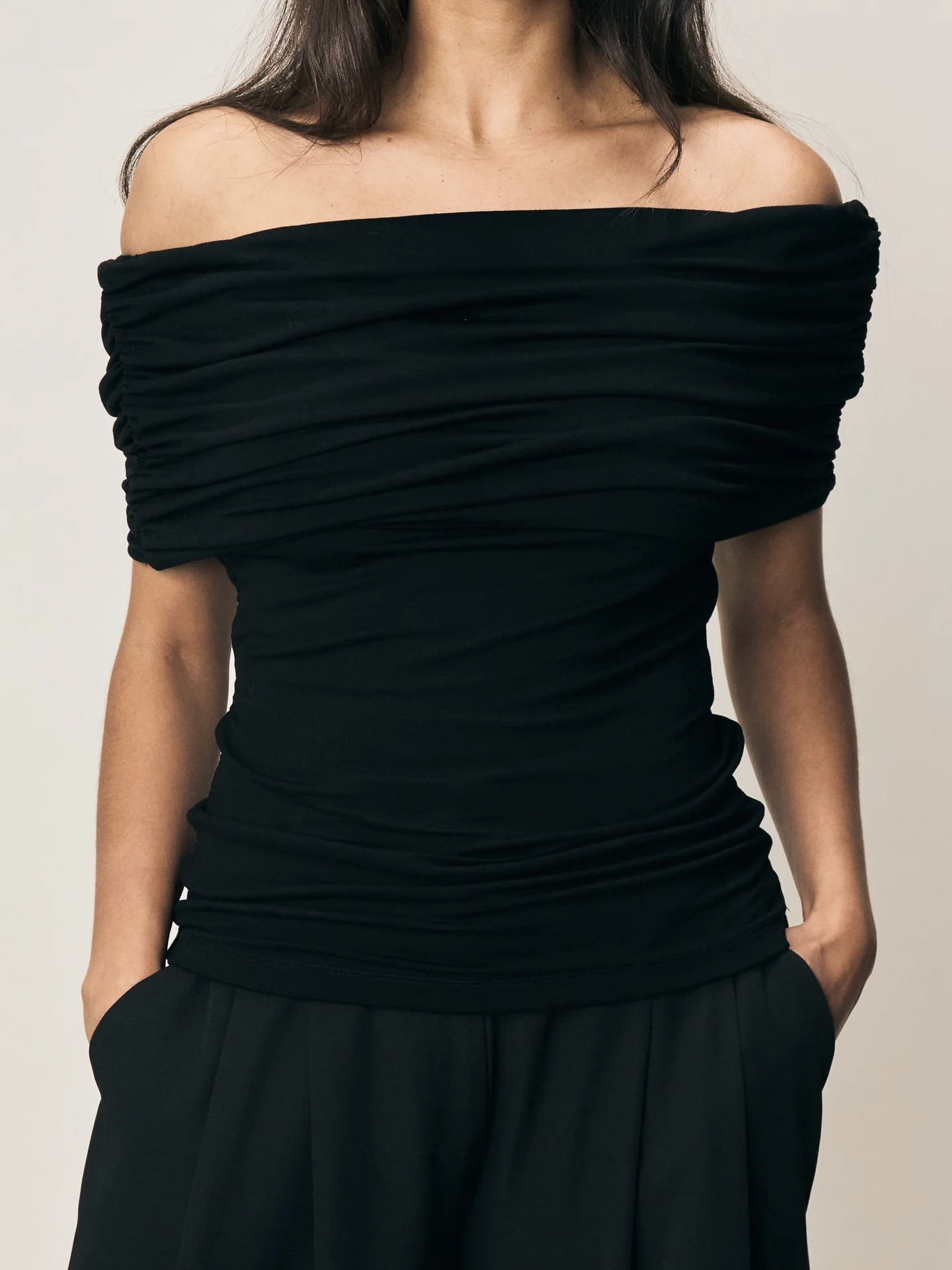 VIVEH Giada har et rynket, off-the-skulder snitt som skaper en vakker omslag over brystet, noe som gjør den til den perfekte kveldstoppen som også kan styles for dagen. Laget av Viveh sin signatur ECOVERO™ viskosejersey-stoff, den bæres stramt og klemmer kroppen elegant. Giada-toppen kan snus og gir deg muligheten til to forskjellige utringninger. Toppen er dobbeltfôret for ekstra støtte.