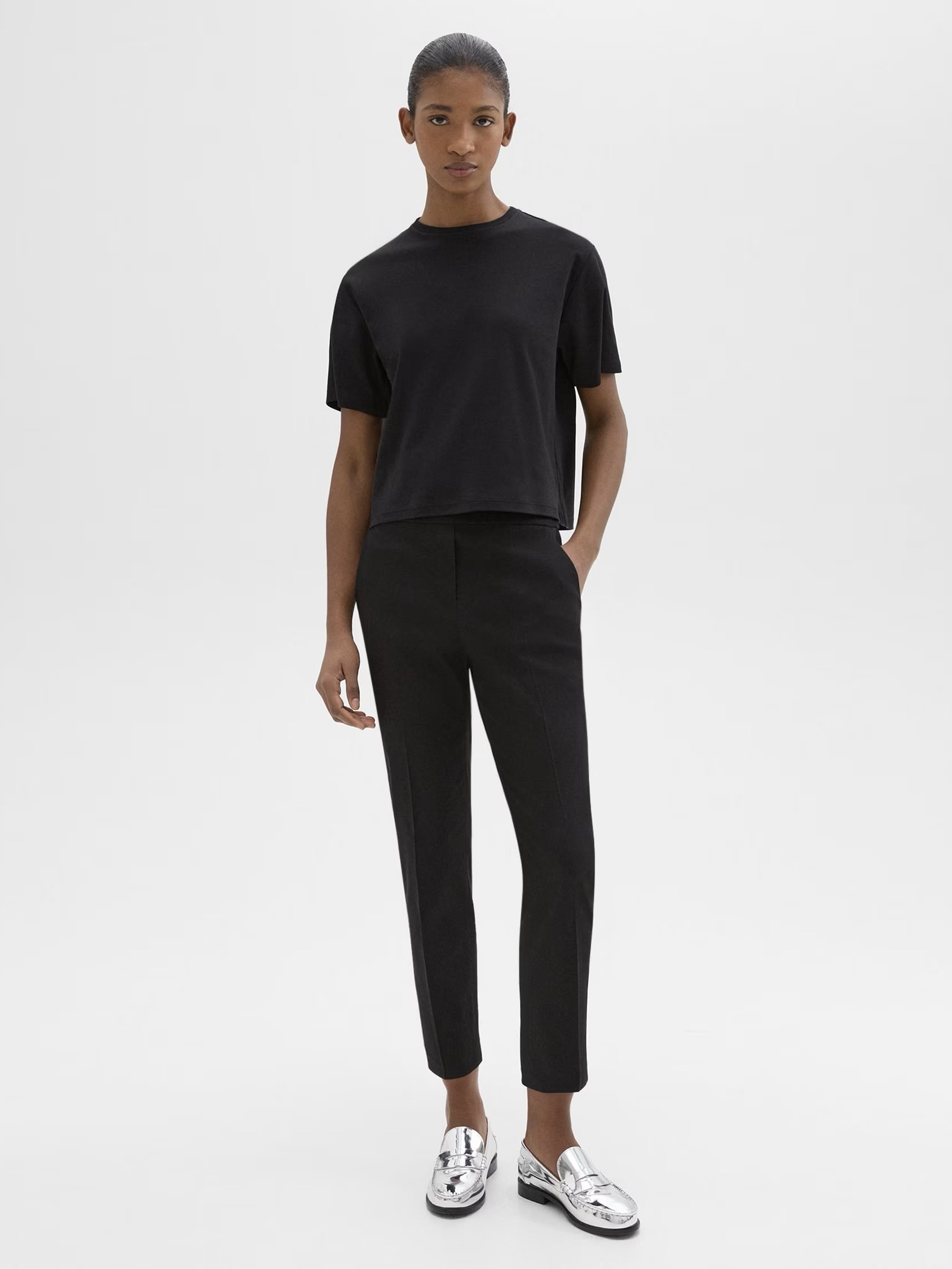 Dressbukse fra Theory med påtrekkbar versjon - en videreutvikler fra deres bestelgende bukse, Treeca. Den er redesignet med en elastisk linning og falsk gylf for en uanstrengt tilnærming til skreddersøm. Den er designet i en slank passform og laget av lett Good Linen forbedret med stretch for enkel bevegelse.