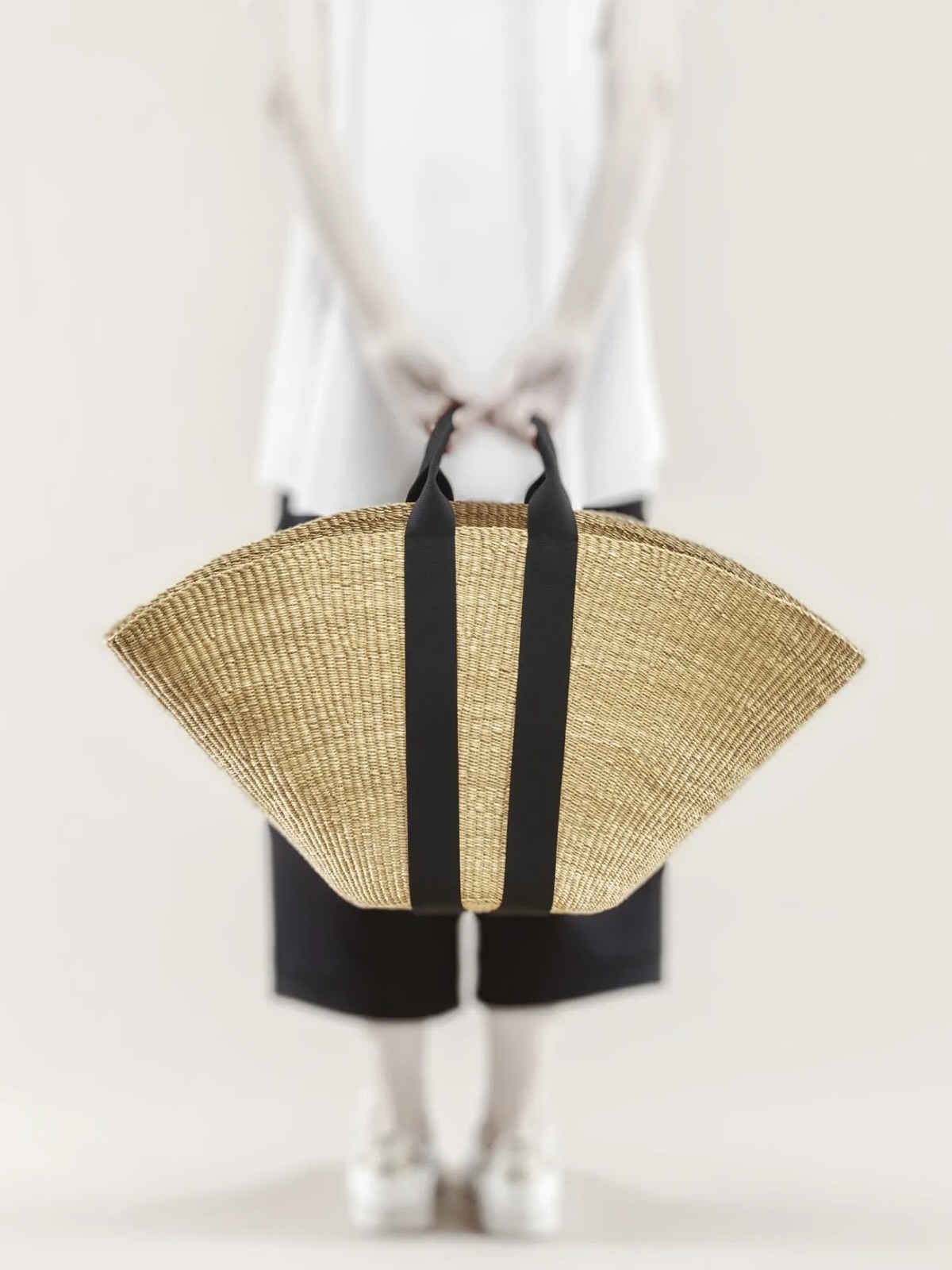 Denne unike vesken fra MUUÑ kombinerer tradisjonelt håndverk med moderne design. Håndvevet av slitesterkt elefantgress – et arbeid som tar opptil tre dager – og montert for hånd i MUUÑs franske verksted.