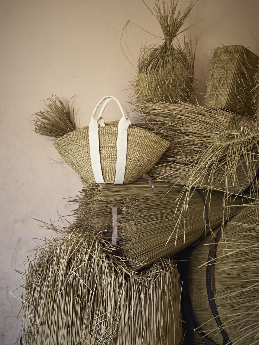 Denne unike vesken fra MUUÑ kombinerer tradisjonelt håndverk med moderne design. Håndvevet av slitesterkt elefantgress – et arbeid som tar opptil tre dager – og montert for hånd i MUUÑs franske verksted.