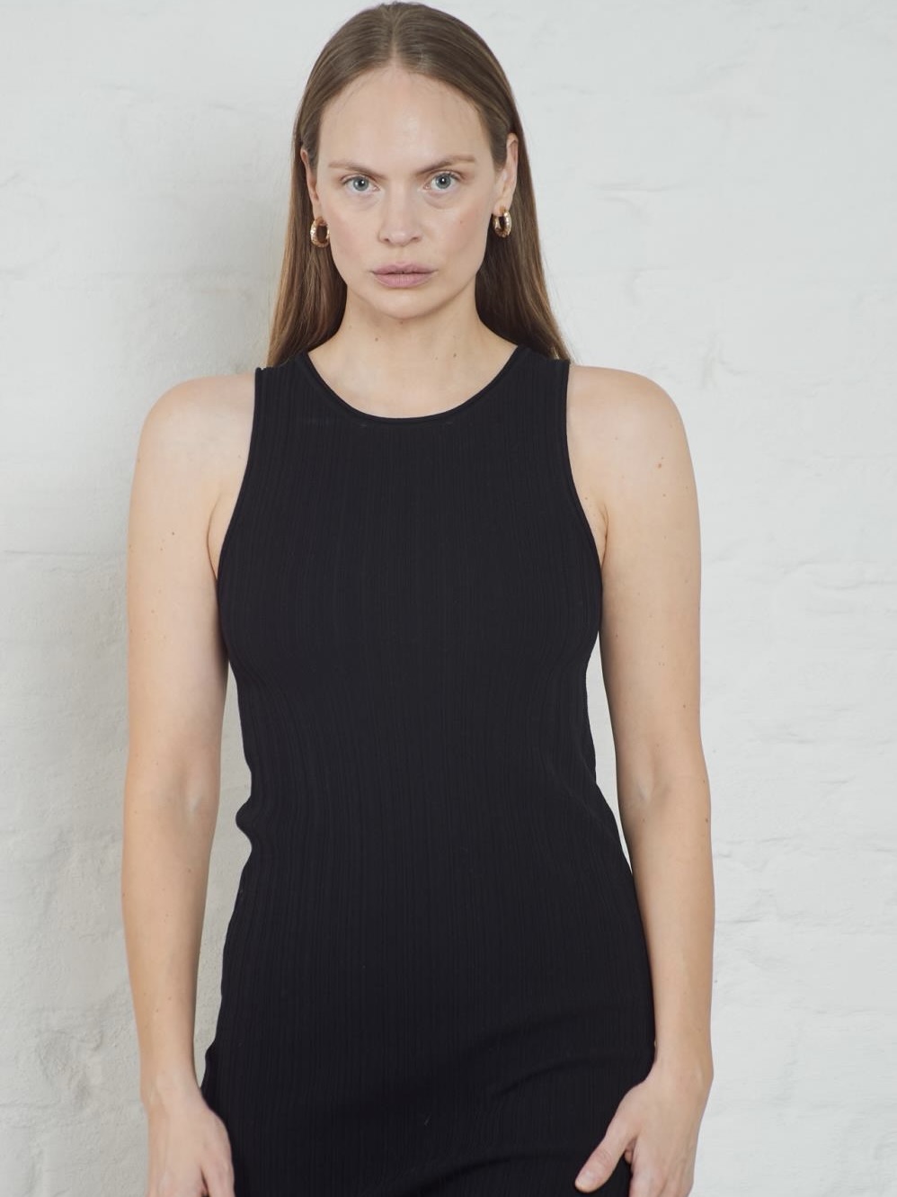 Elegant kjole i en kompakt, men stretchy bomullskvalitet. Modellen er rett i fasong, men har en tettsittende passform. Fint basisplagg som passer både til hverdag og til pent.