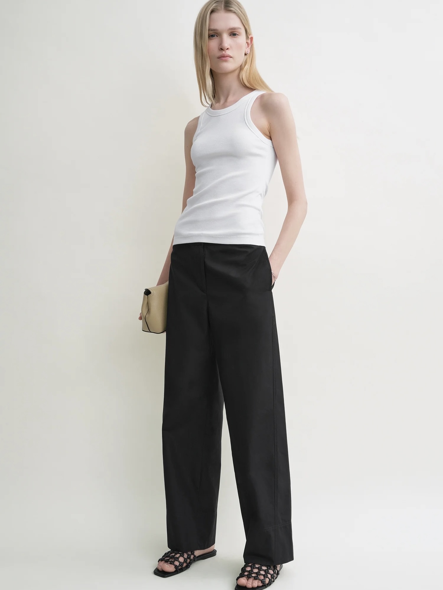 Signature TOTEME tanktopp laget i Portugal av ribbestrikket jersey i økologisk bomull blandet med et hint av elastan for en komfortabel, kroppsnær passform. Den har høy rund hals og buede ermehull som fremhever skuldrene, og avsluttes deretter med en rett fald.