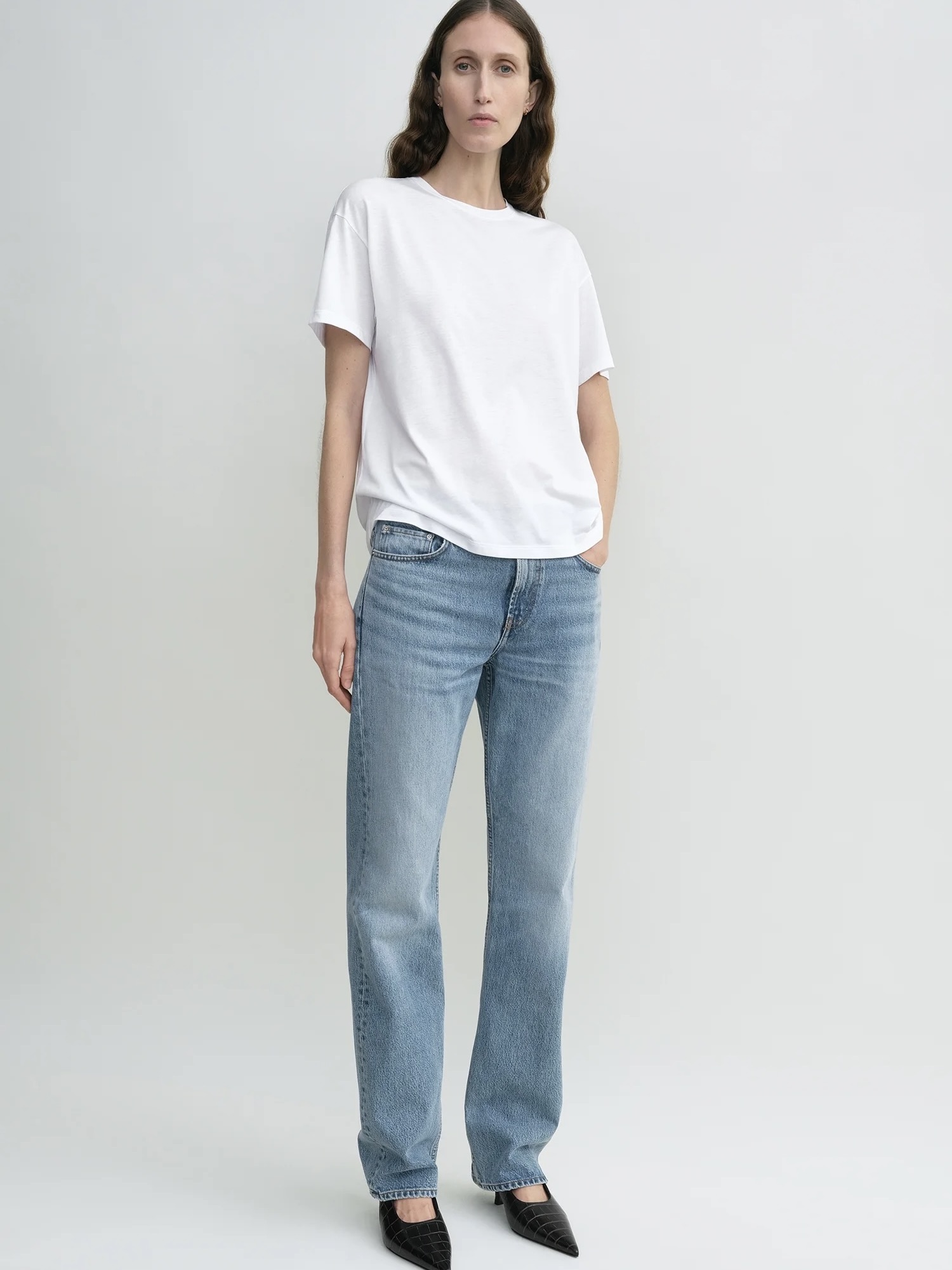 Designerens merknad: "Disse jeansene fra TOTEME Garderob-kurasjonen har en klassisk lav til middels midje og en rett silhuett myknet av ekte vintage-vask. Sett dem sammen med hæler for å oppveie det avslappede, maskuline utseendet."