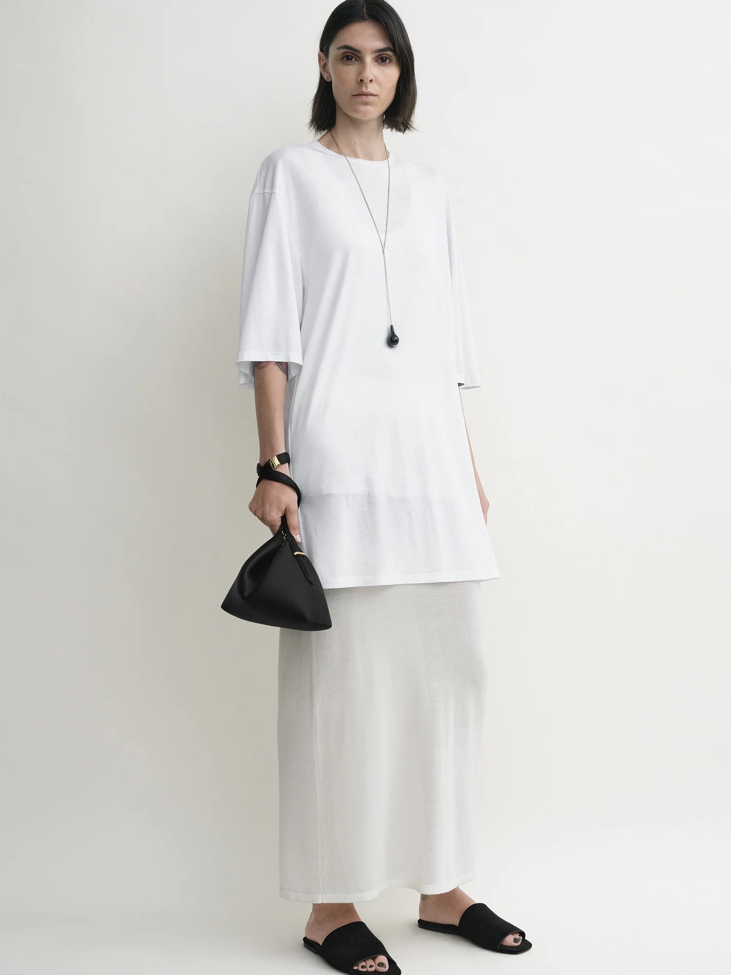 TOTEME-kjole inspirert av en avslappet t-skjorte for uanstrengt sommerdressing. Den er laget av ekstra myk og lett jersey med senkede skuldre og albuebeite ermer som forsterker den løse passformen.