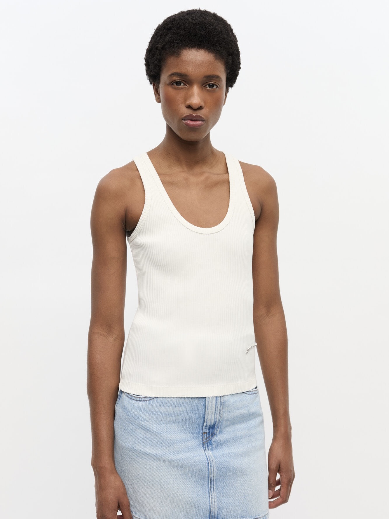 Denne toppen har en kroppsnær silhuett, en dyp halsringning og en brodert GANNI-logo.