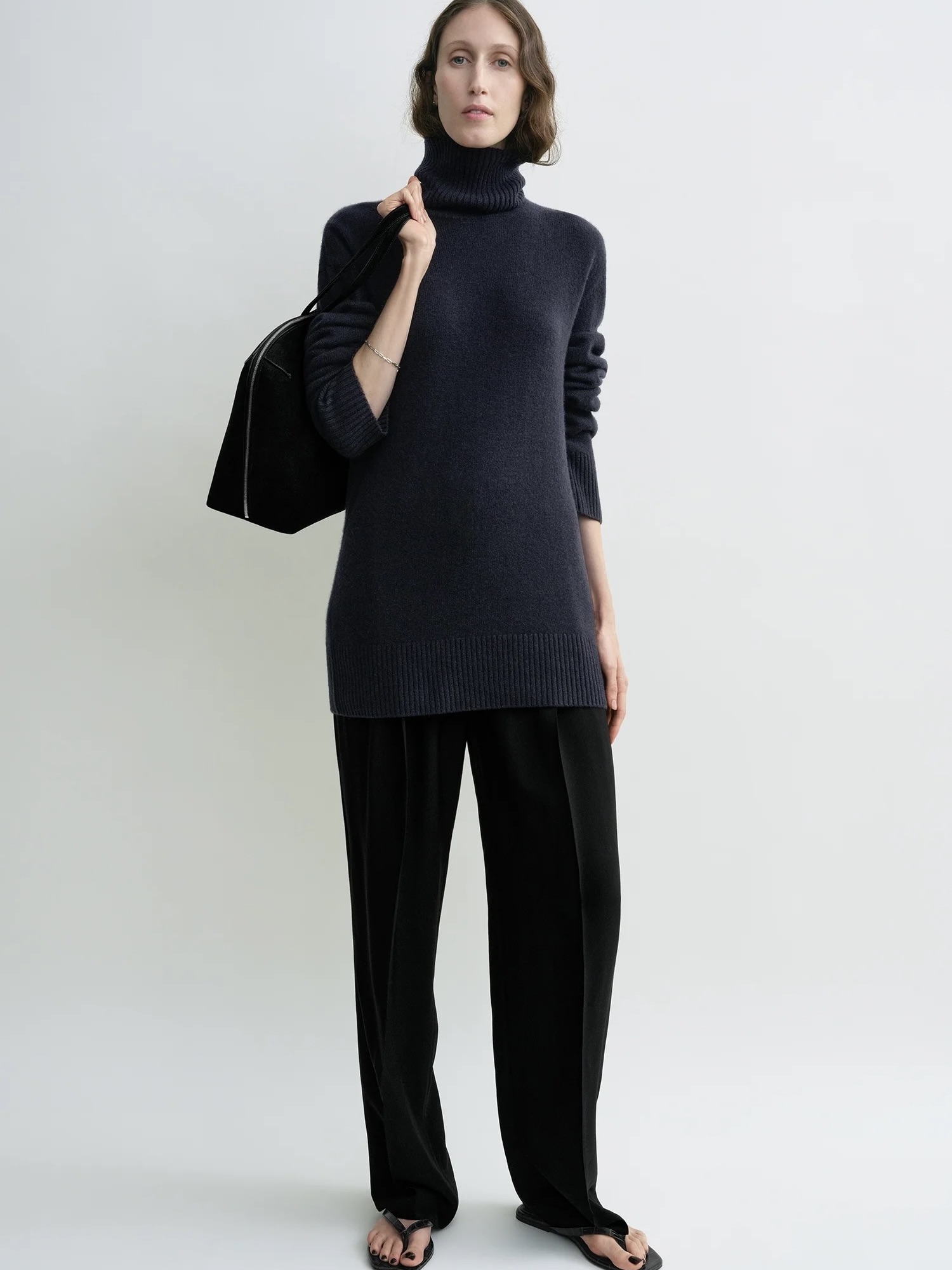 Designerens merknad: «I jakten på å skape den perfekte kasjmir-høyhalskragen, designet vi denne TOTEME Garderob-strikkgenseren som en garderobeklassiker med rett passform og litt lengre kant. Bruk den som et første lag, sammen med avslappede slacks eller jeans.»
