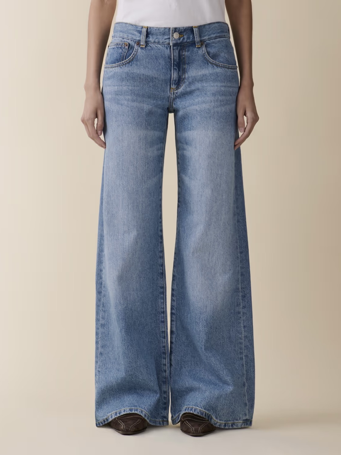 «Kyoto» er en uanstrengt kul denim med lav midje og en løs, utsvingt silhuett. Den har glidelåsgylf, lav midje og vide ben fra låret som blir enda bredere nederst.