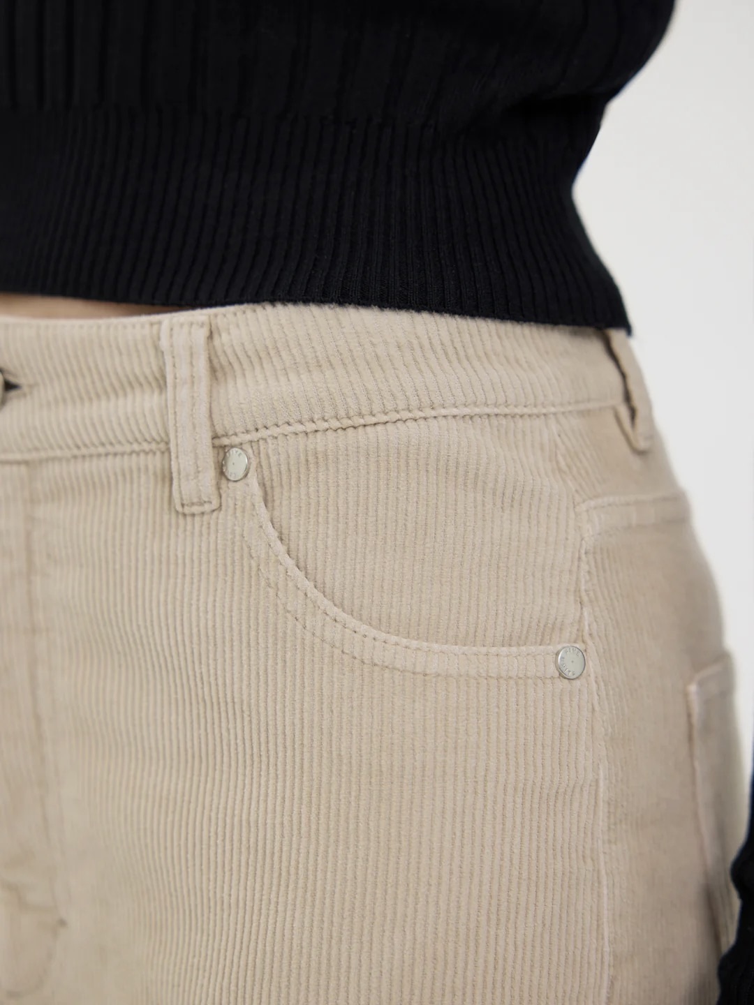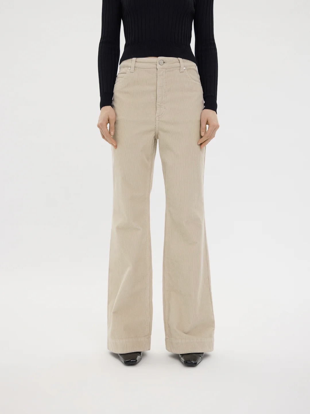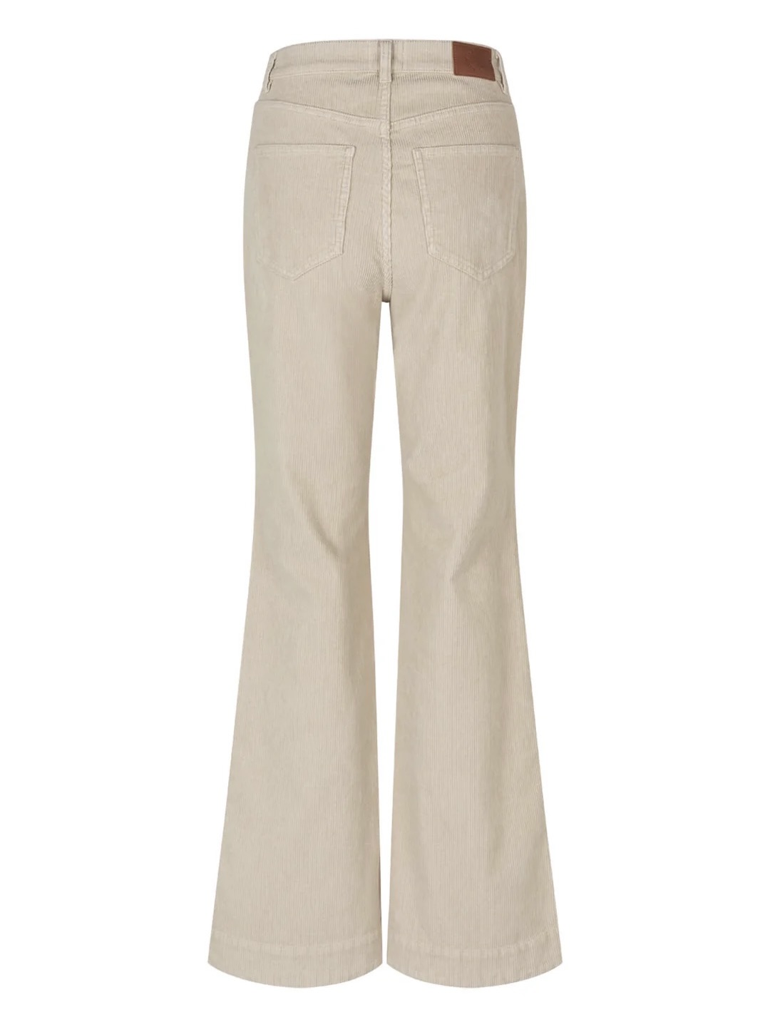 OdetteFV er laget av myk fløyel for en luksuriøs følelse, og har en flatterende silhuett som faller elegant fra kneet. De sitter høyt i midjen for å skape en timeglassfigur og er detaljert med doble toppsøm langs de indre sømmene. Glidelås- og knappelukking sikrer en sikker passform, mens den klassiske femlommersmodellen gir strømlinjeformet oppbevaring.