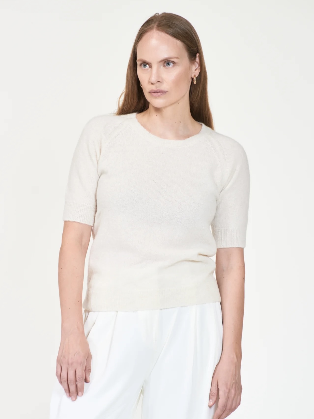 Georgina fra Arnie Says er en kolleksjonsklassiker som aldri går av moten. Denne kortermede strikkegenseren er laget i en myk og slitesterk alpakka- og ullblanding som gir både komfort og varighet. Modellen har en løs rund hals, raglanskuldre og en rett, nett fasong som gjør den enkel å style. Et tidløst basisplagg som passer like godt til jeans som til skjørt.