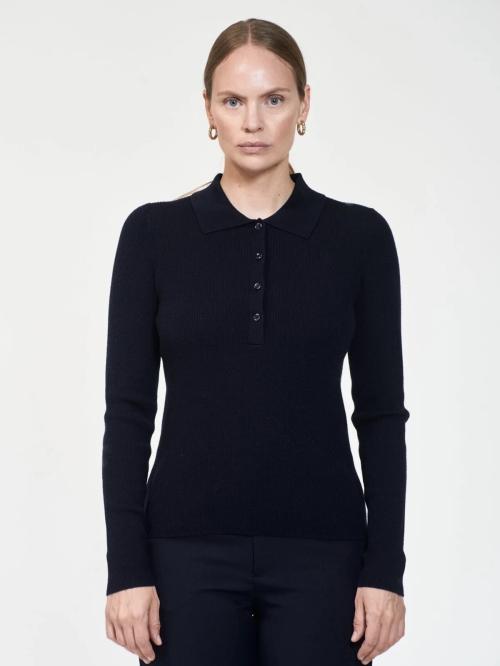 Klassisk og tidløs – denne langermede toppen er ribbestrikket i 100 % merinoull og har en smal, kroppsnær passform. Det myke og pustende materialet gir høy komfort, mens den pene kragen og knappestolpen tilfører et preppy uttrykk. Perfekt alene eller som base i lag-på-lag-antrekk. 100 % Merino