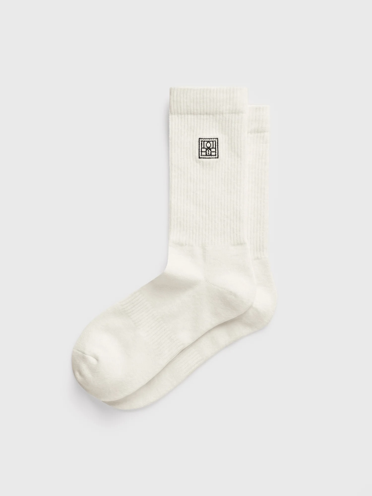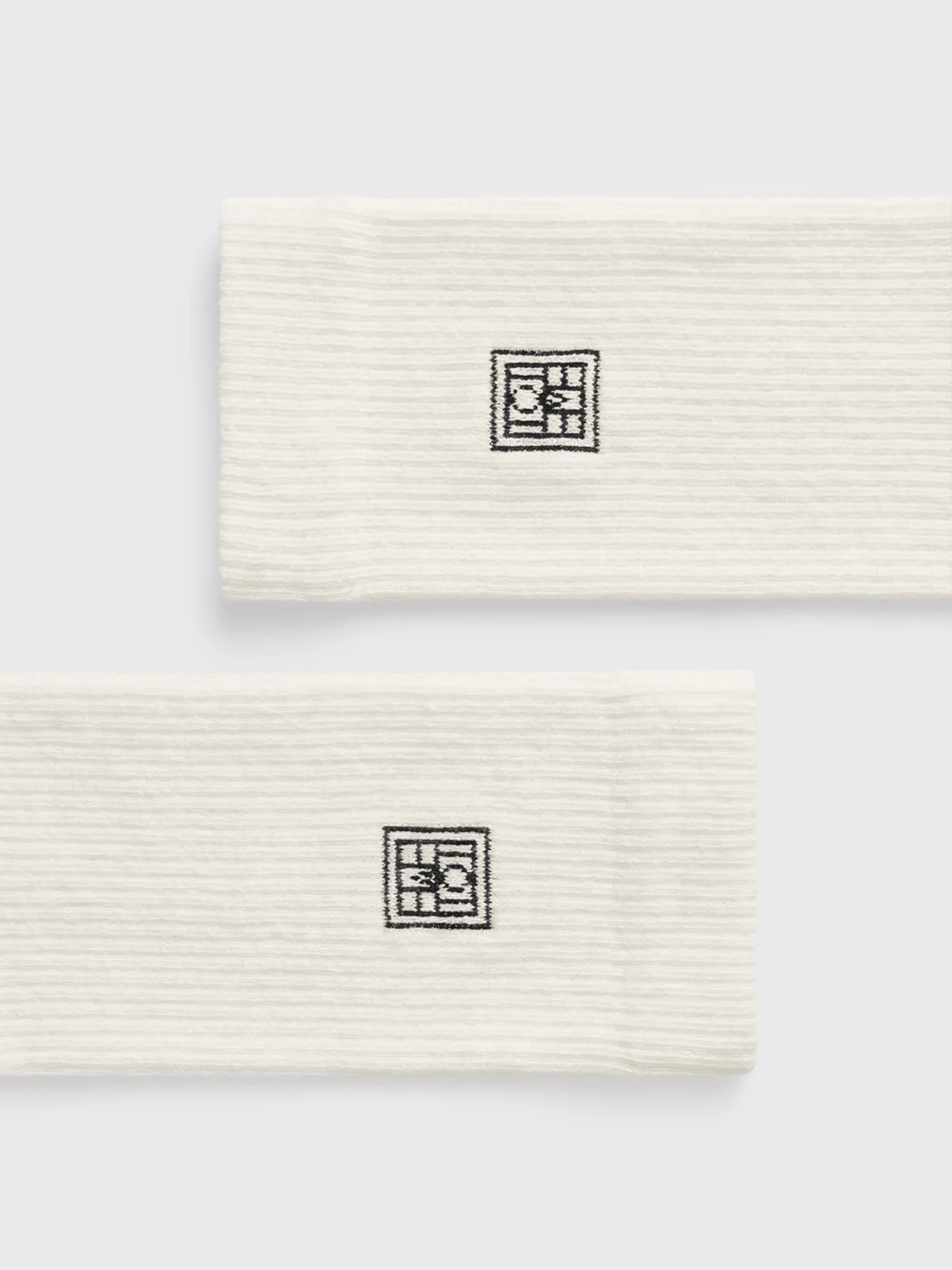 To par sokker med vårt karakteristiske monogram. De er laget av en økologisk bomullsblanding med ribbekant i øvre kant og innfelt kant for en komfortabel passform.