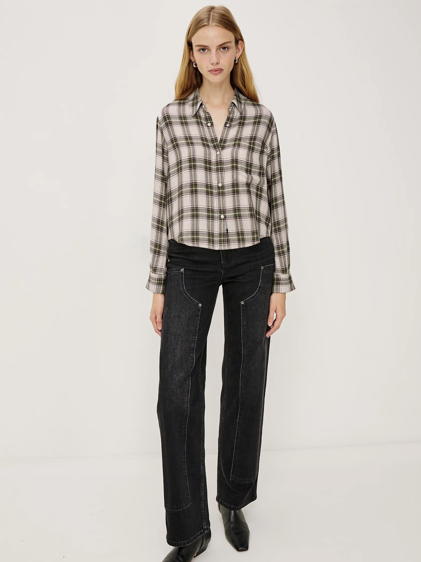 Hvis du elsker Hunter-modellen, møt Malin. Denne rutete blusen er laget av Rails sin signatur, ultramyke rayon med en løs twillvev, og har den samme tidløse følelsen – nå 13 cm kortere for en kort, firkantet passform.