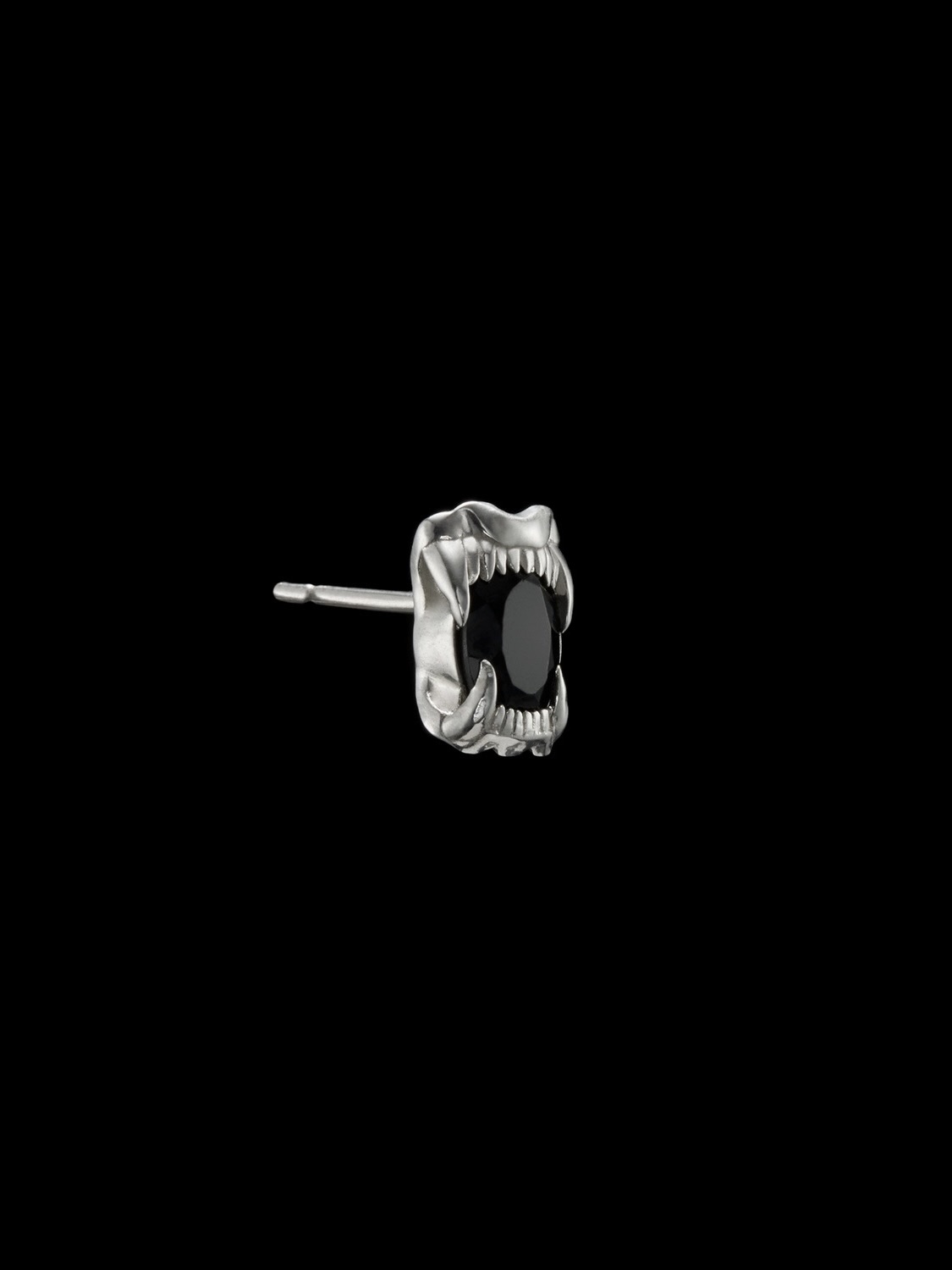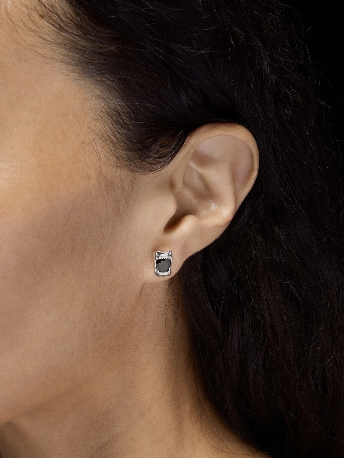 Mini Jaw Stone Ear Stud - Silver - Black Spinel
