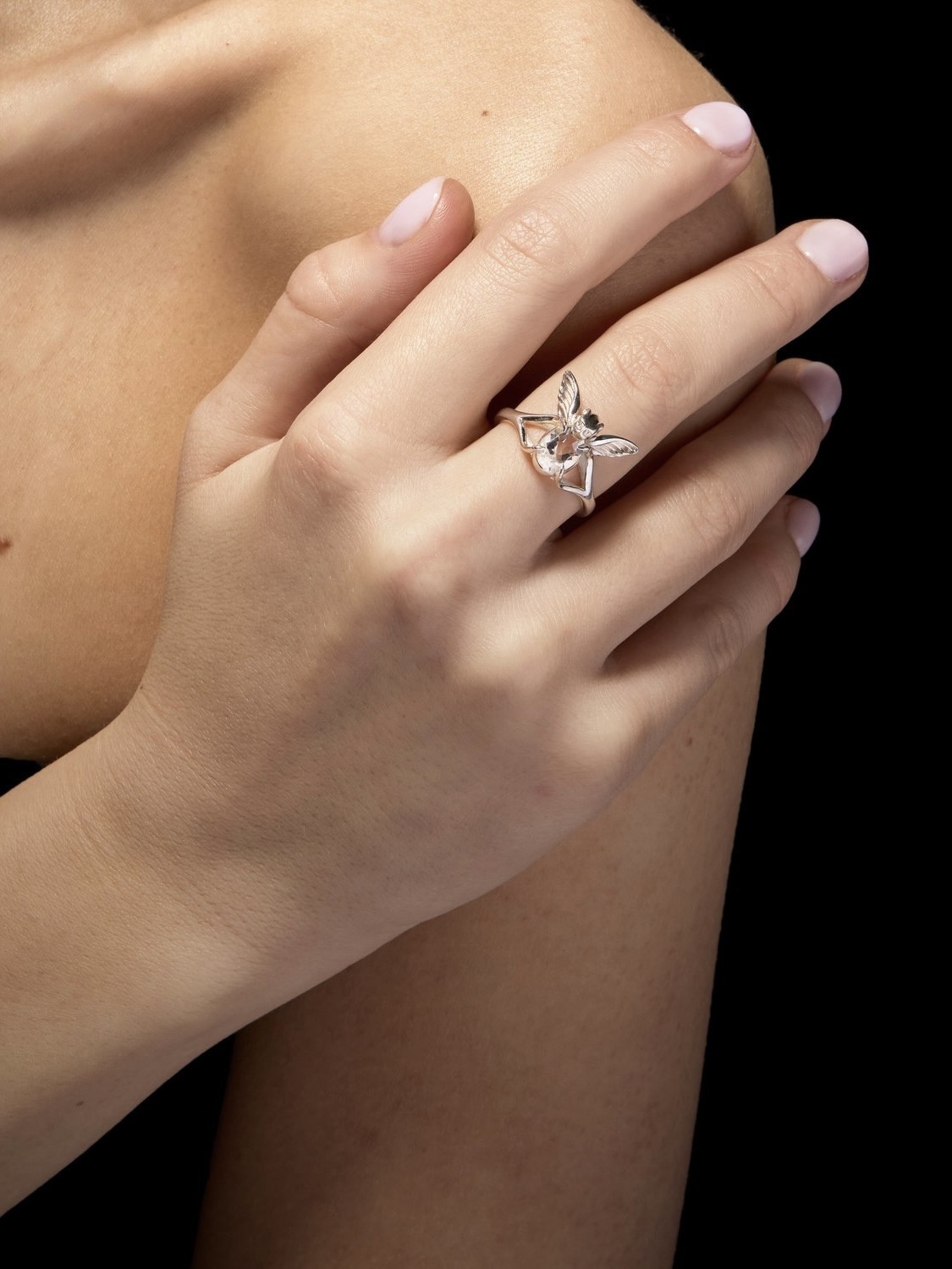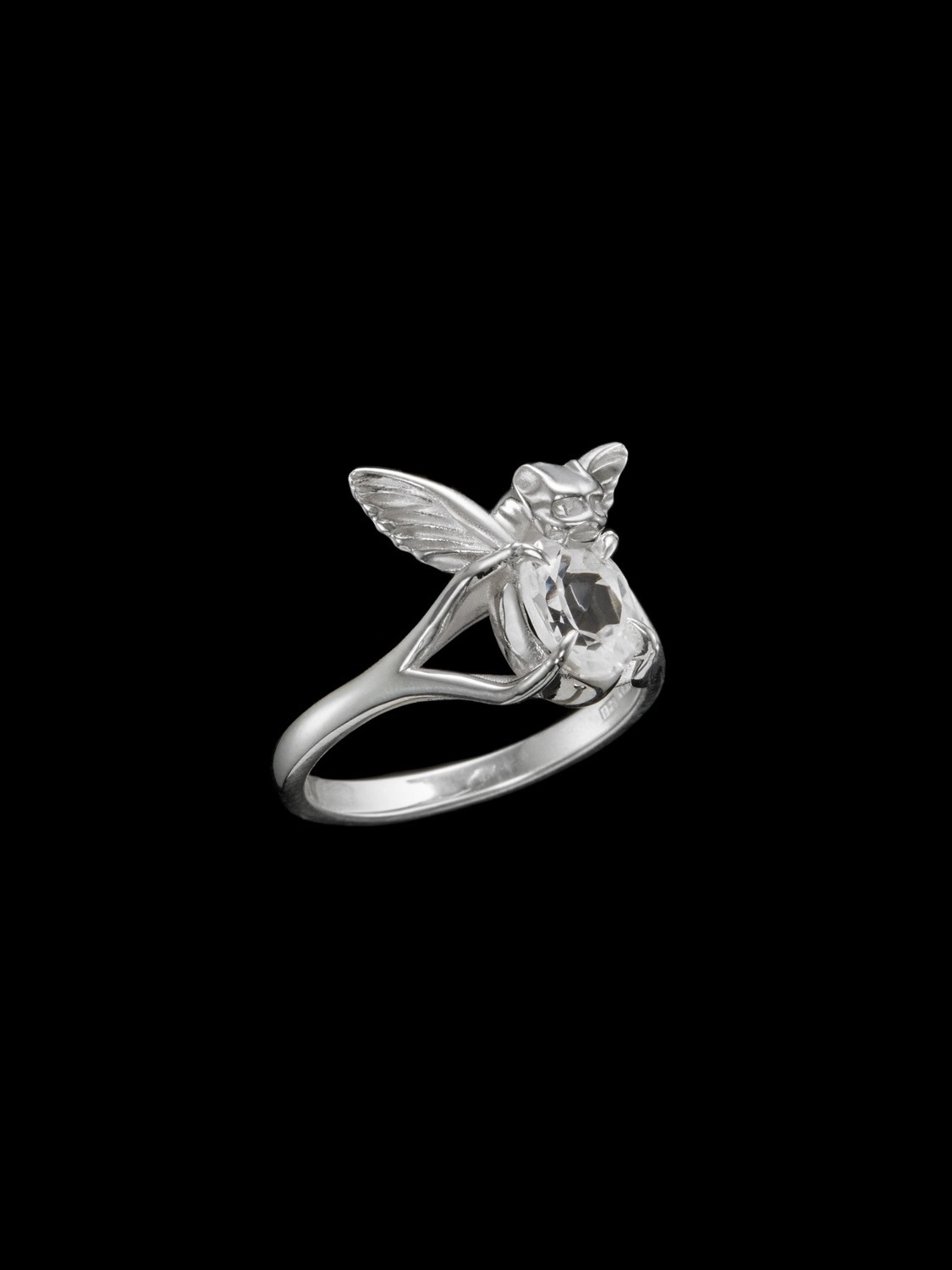 Tiny Gargoyle Ring - Silver - Clear Quartz