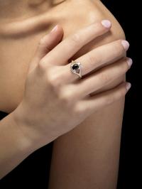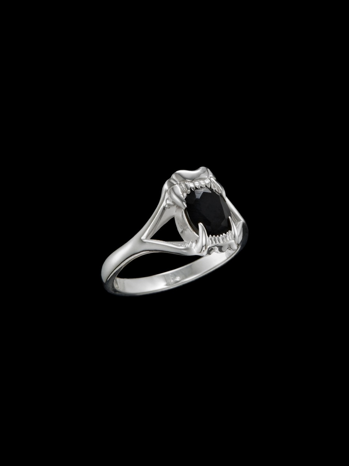 Tiny Jaw Stone Ring - Silver - Black Spinel