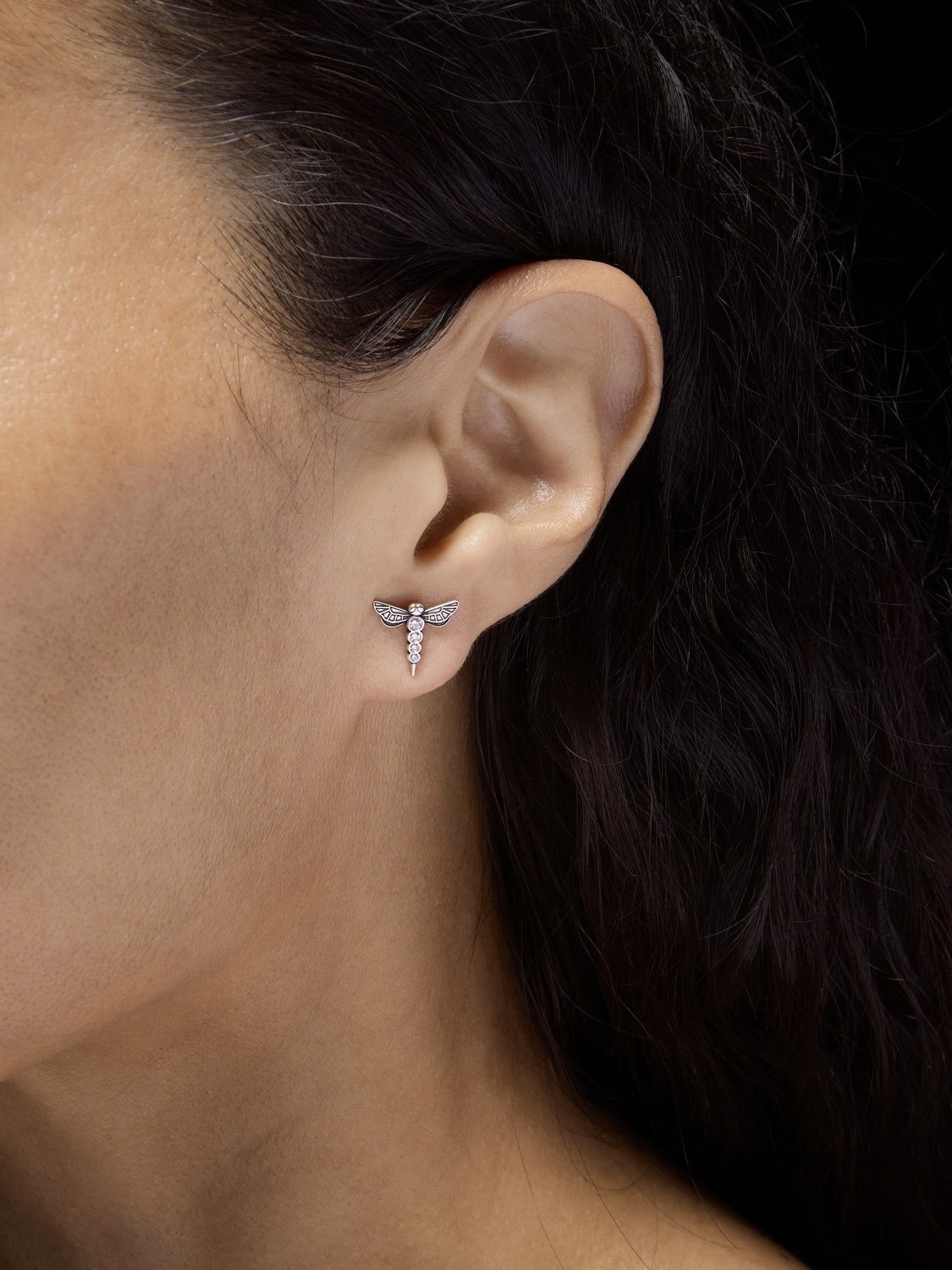 Dragonfly Ear Stud - Oxidized Silver - TW/VS Lab Grown Diamond
