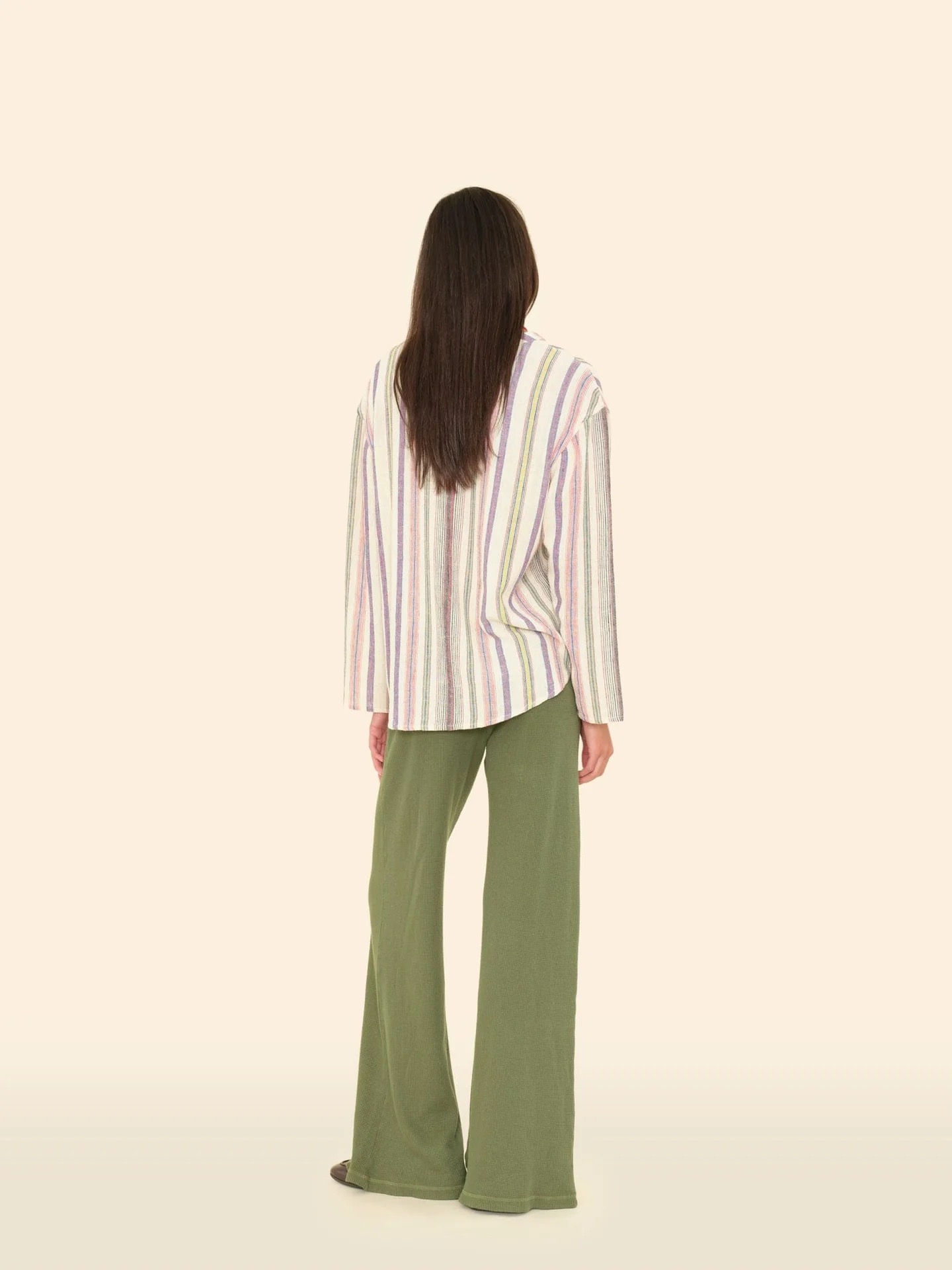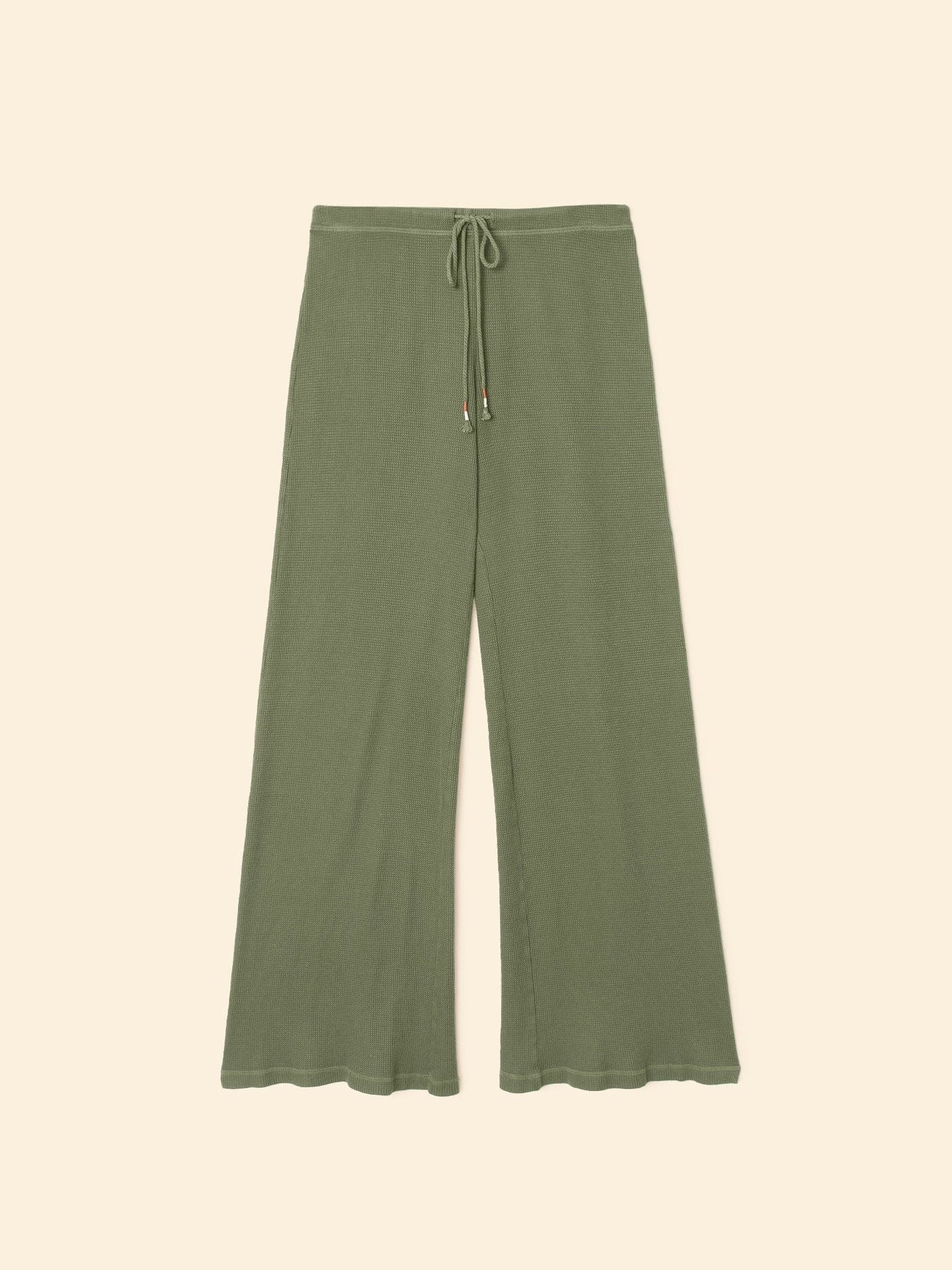 Fransk sjarm møter kalifornisk avslappethet. Manon er ny denne sesongen i Xirena sin myke vaffelstrikk i bomullsblanding. Denne avslappede pull-on-buksen har vide ben og elastisk snøring i midjen med kontrastkant for en raffinert, avslappet finish.