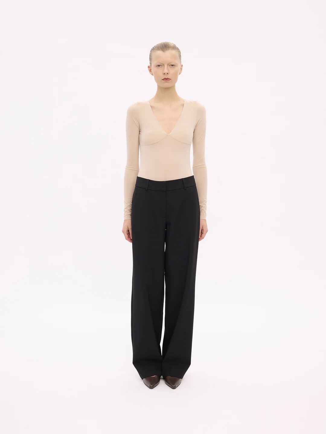 Dena er en vid bukse med et vakkert fall. Med en middels midje er de formet for å fremheve hoftene dine og la stoffet falle rundt beina dine, noe som fremhever det luksuriøse utseendet. En elegant formet linning følger midjens kurve og beveger seg med deg.