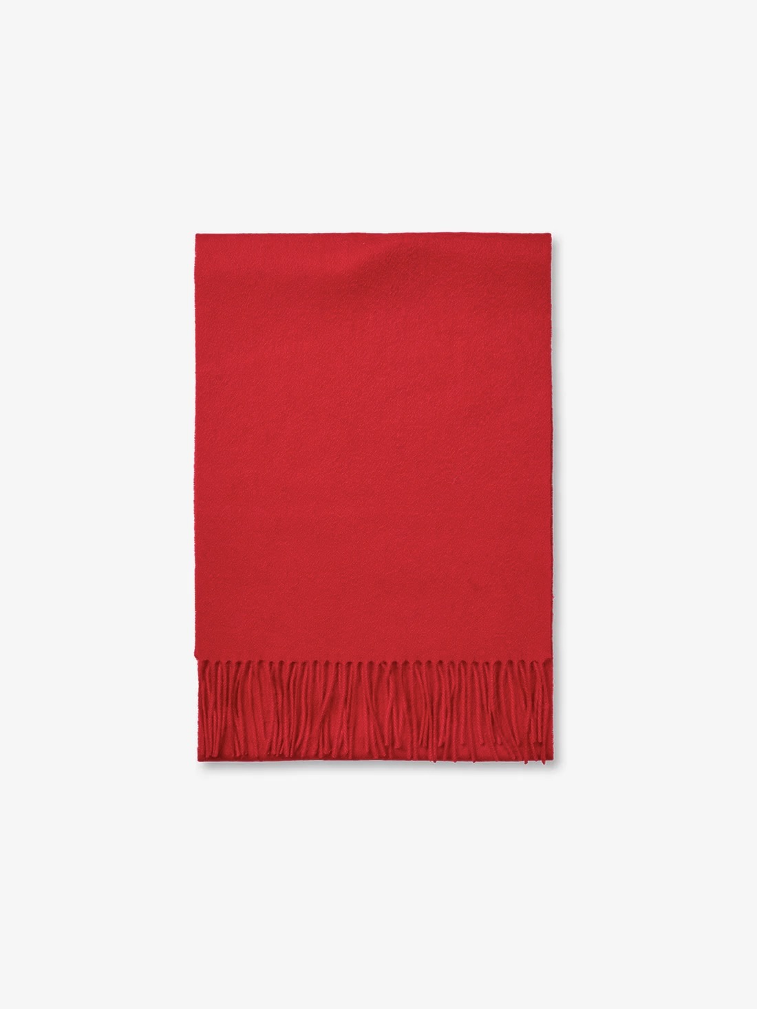 Cashmere Woven Scarf i rødt er laget av 100 % premium kasjmir, og er luksuriøst mykt, lett og skånsomt mot huden. Den glatte, litt skinnende overflaten sikrer varig komfort og holdbarhet sesong etter sesong. Med frynser i endene passer dette skjerfet vakkert til ethvert antrekk og gir et subtilt og sofistikert preg. Den allsidige formen gir en rekke stylingalternativer, enten det draperes uanstrengt over skuldrene, pakkes tett rundt halsen eller brukes lagvis med yttertøy for ekstra varme.