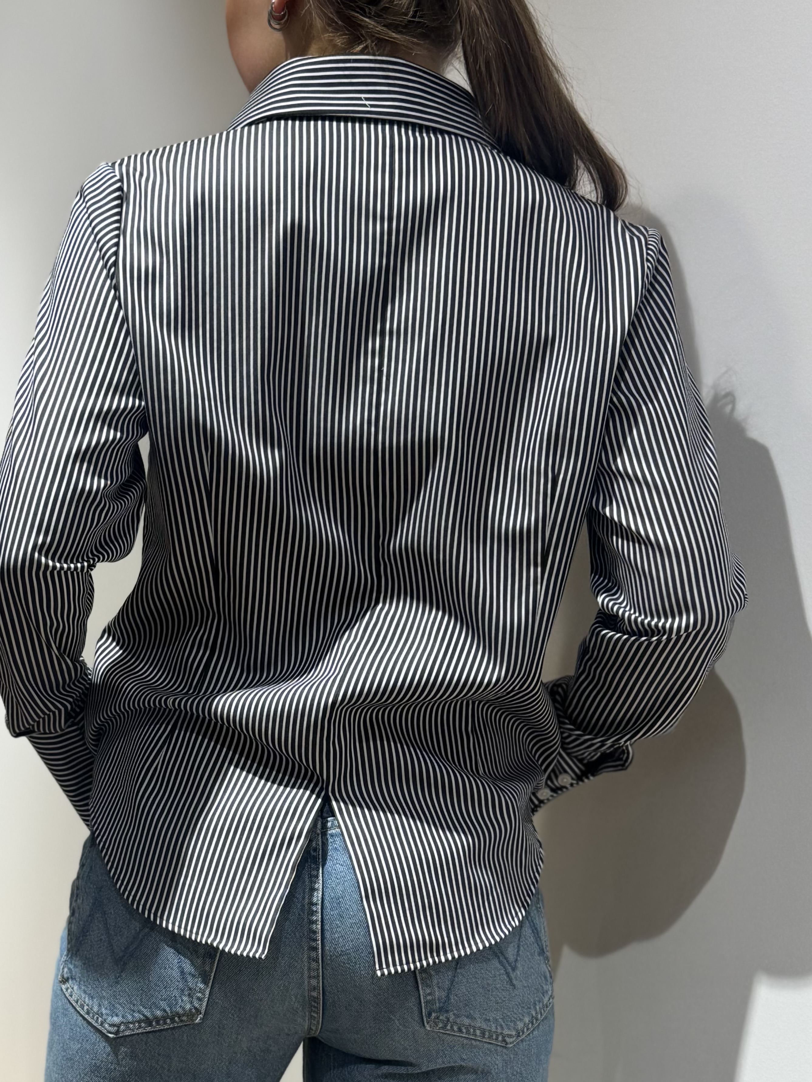 Manon Shirt Tux Front-Satin Stripe