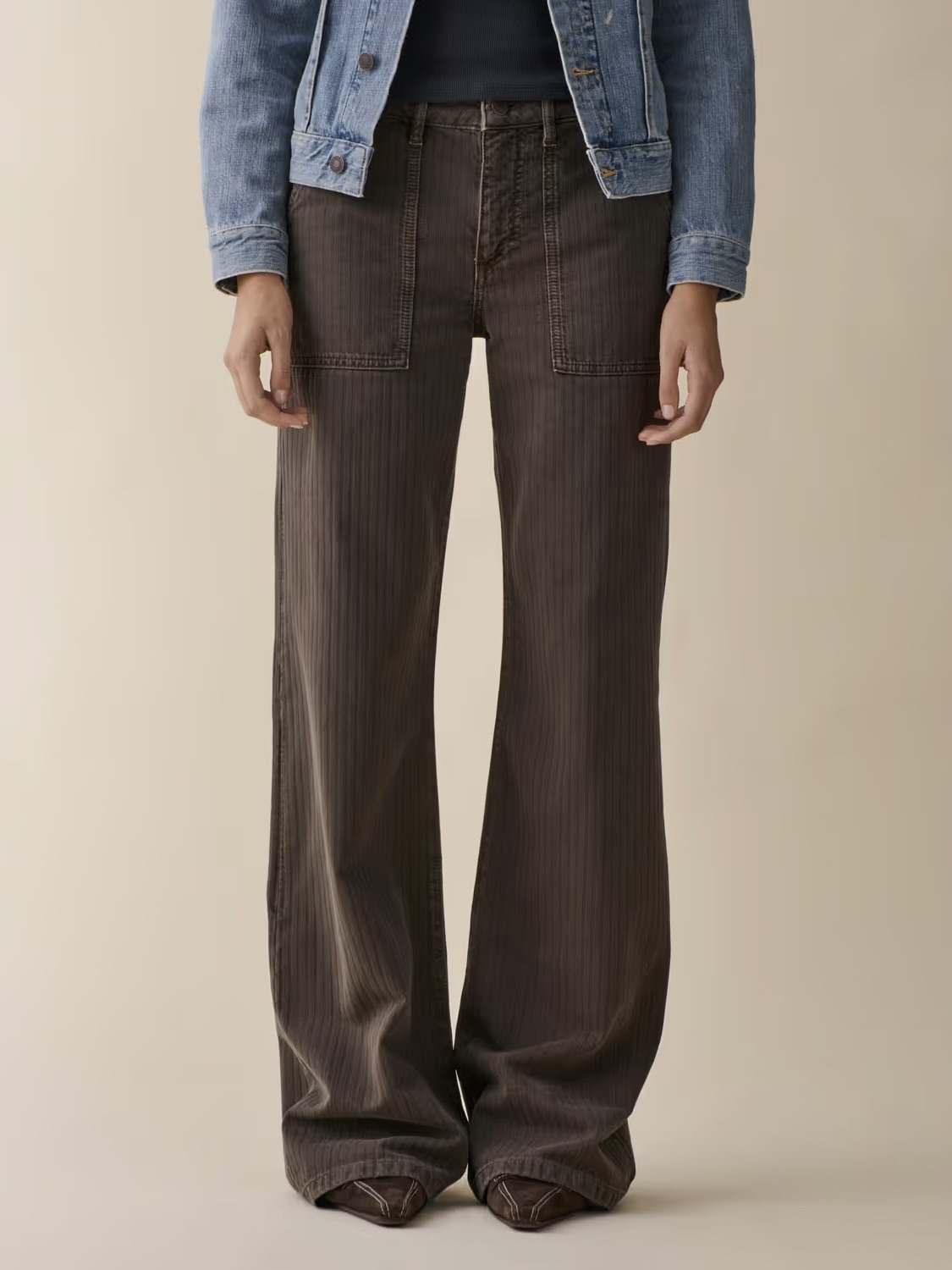 «Guell» er en snekkerinspirert, utsvingt passform med raffinerte arbeidsklærdetaljer. Den har lav midje, ekstra lang, løs utsvingt passform ved benene, samt påsydde lommer foran og bak.