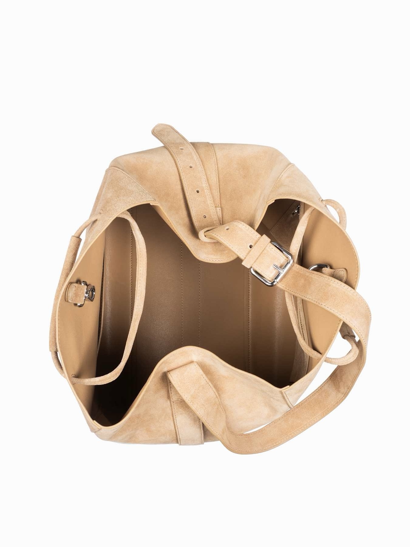 En stor og allsidig sekklignende veske med justerbart bærebelte, glidelåslomme inni og minimalistisk design. Elegant og klassisk, den kompletterer ethvert antrekk med diskret merkevarebygging og leveres