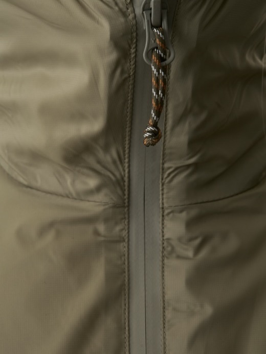 Justerbar hette med elastisk snøring. Elastiske mansjetter og justerbar fald holder været ute. To håndlommer med glidelås. Helt vanntette YKKf-glidelåser. Ergonomisk snitt følger naturlige bevegelser. Pakkbar, 370 g.