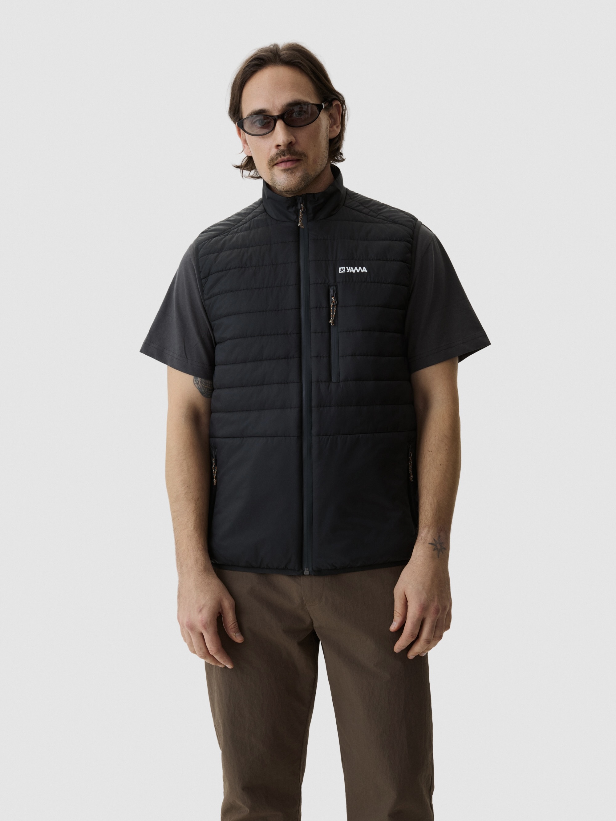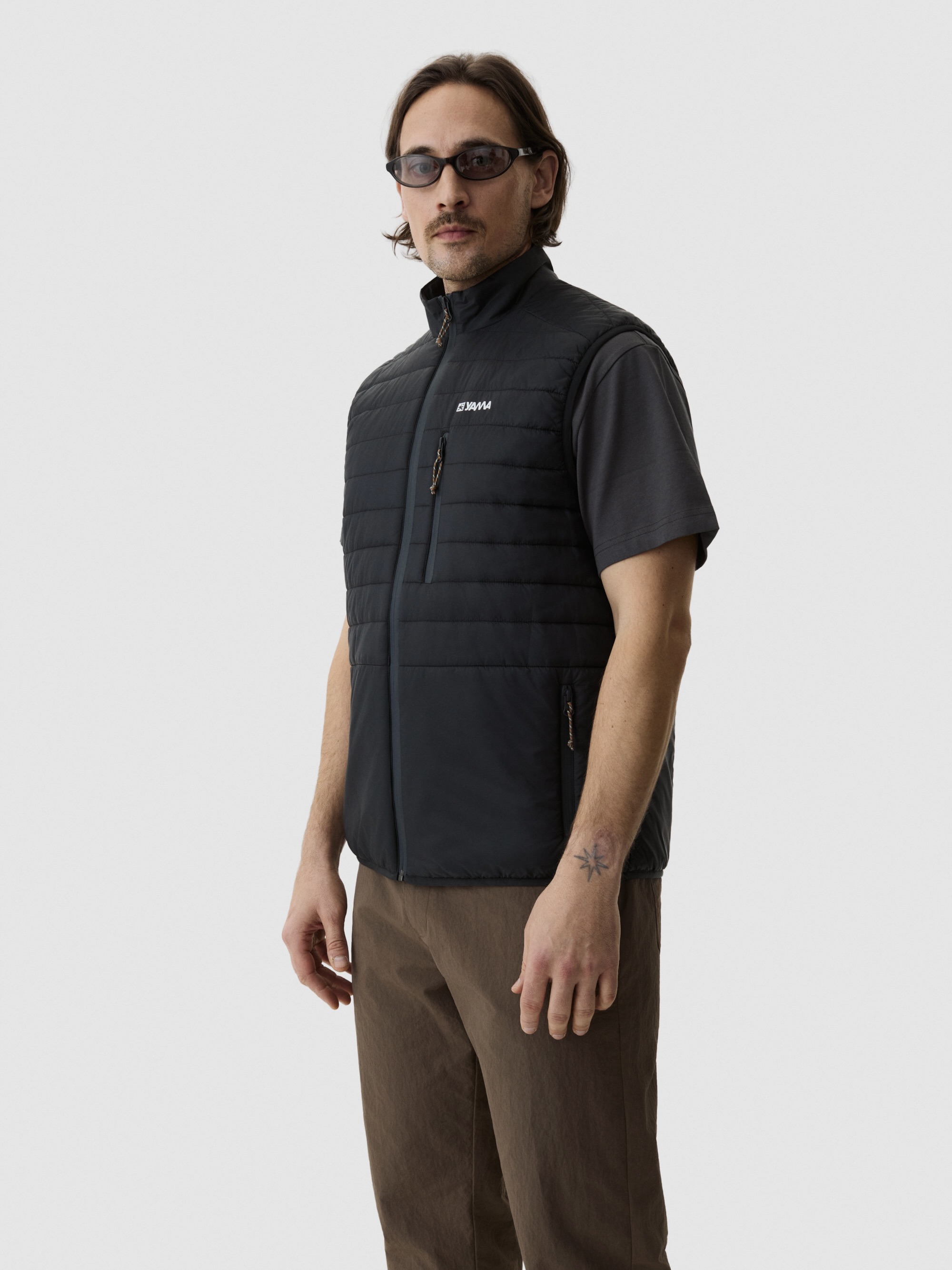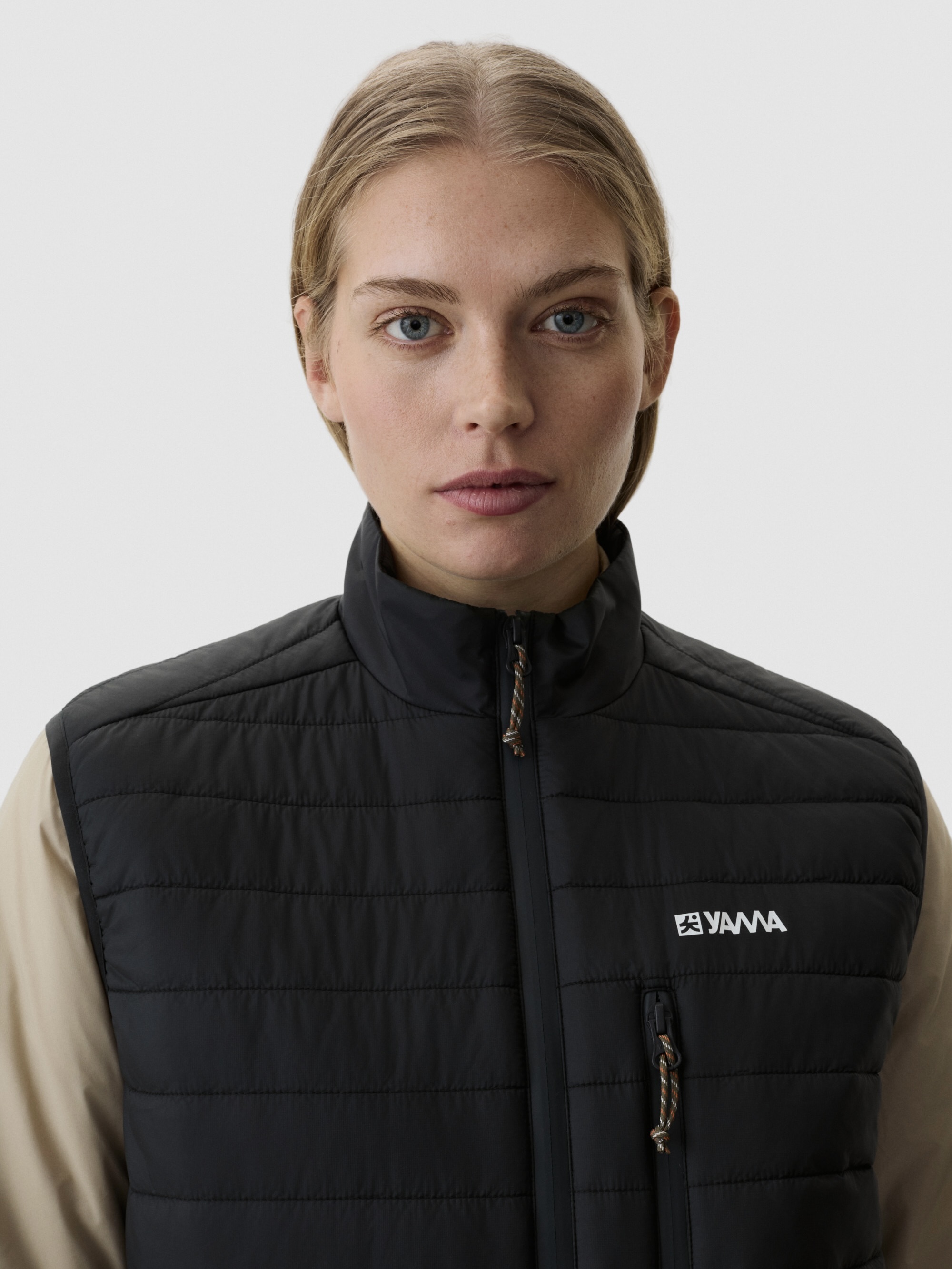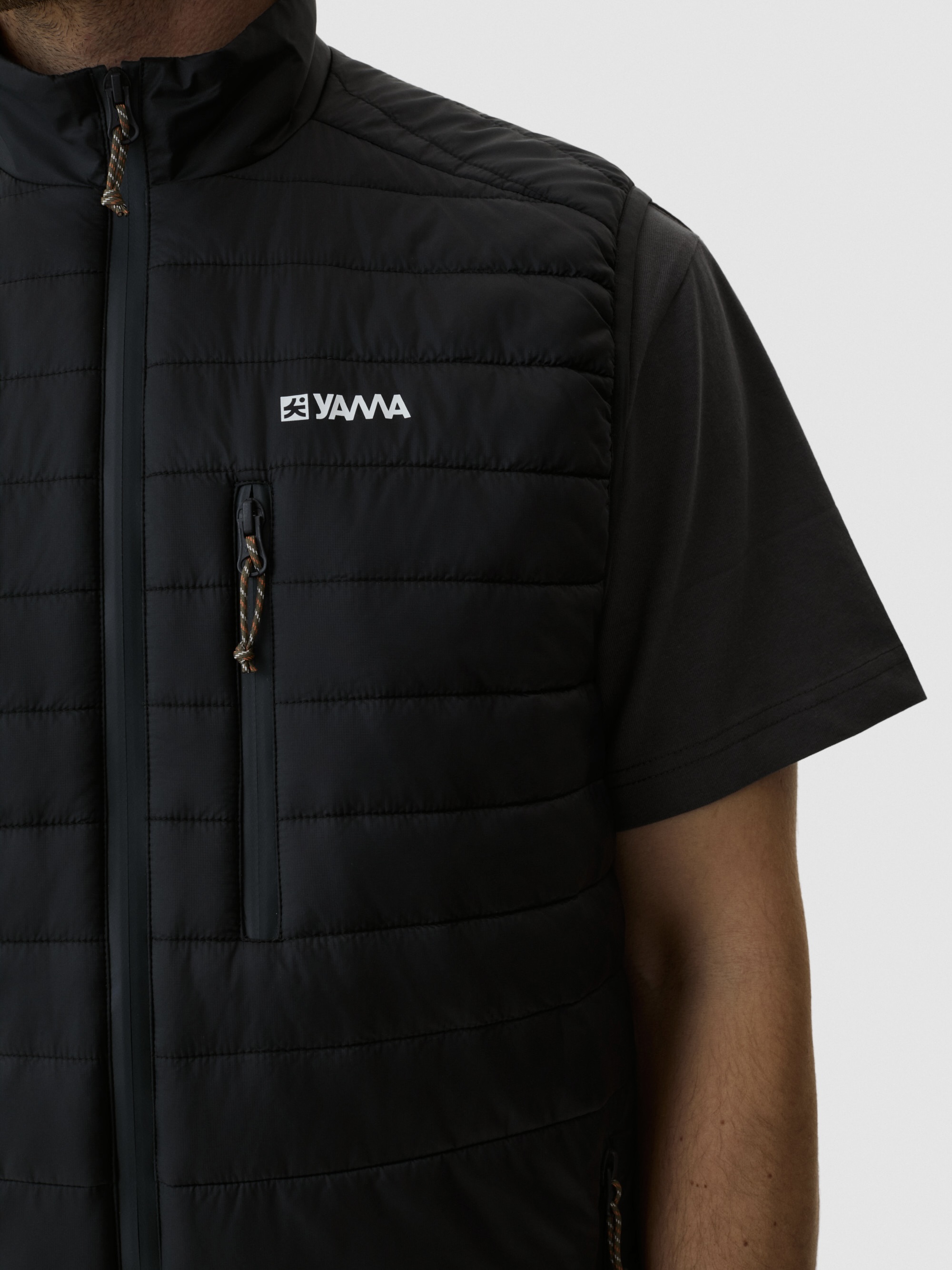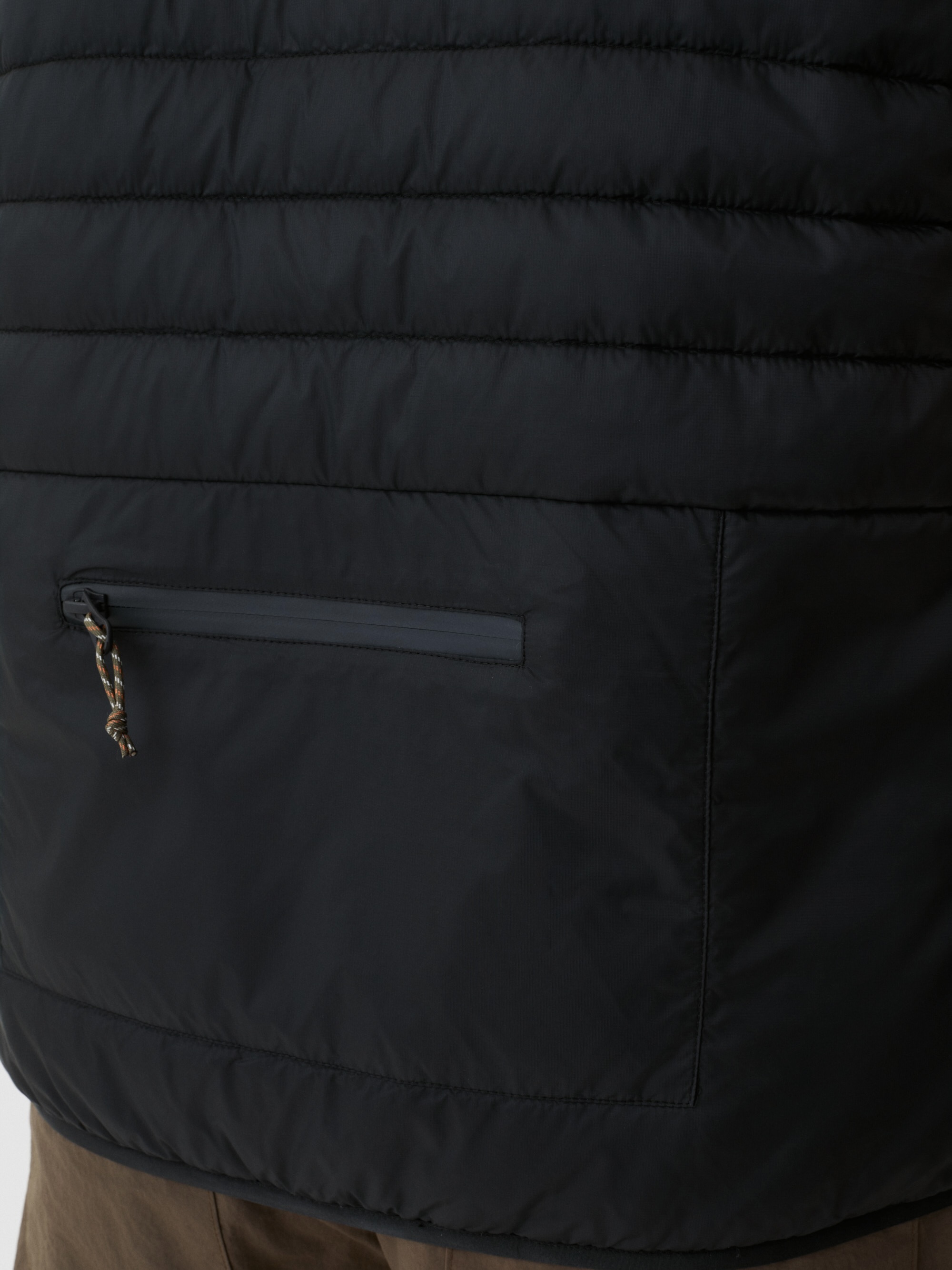 Avsmalnet silhuett – bredere ved brystet, smalere nederst. Ståkrage holder kulde ute. Fire glidelåslommer gir sikker oppbevaring. Vanntette YKK-glidelåser. Quiltingen gir visuell tekstur samtidig som den opprettholder pakkbarheten. Konstruert for holdbarhet. En vest designet for variable forhold.