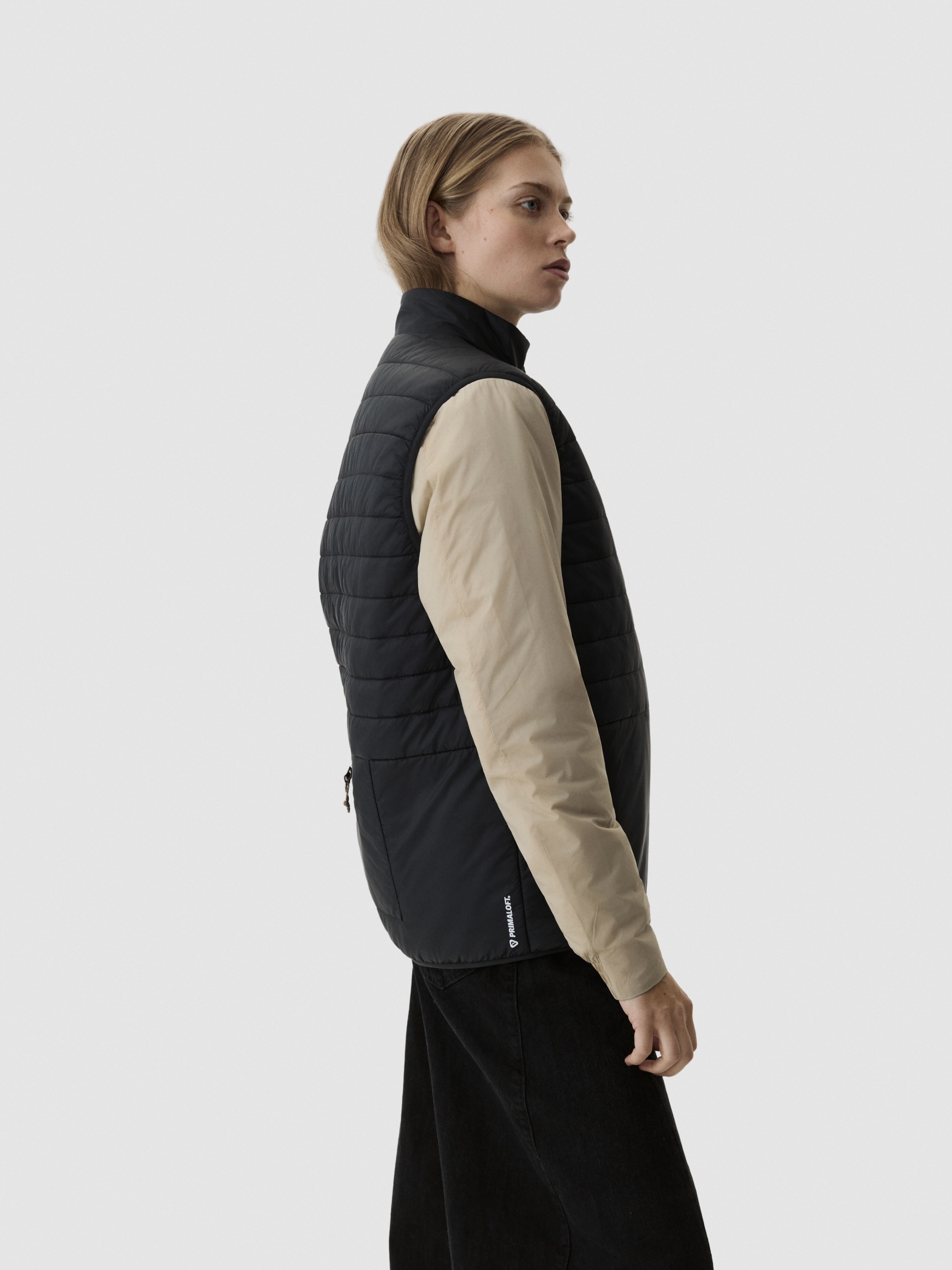 Kjernevarme med pufferkonstruksjon. Horisontale quiltekanaler fordeler 60 g PrimaLoft®-isolasjon jevnt. Ermeløs design holder armene frie. Elastiske armbånd bøyer seg med bevegelse. Avsmalnet silhuett. Fire lommer inkludert stor oppbevaring bak. Ståkrage. Urban silhuett med utendørsytelse.