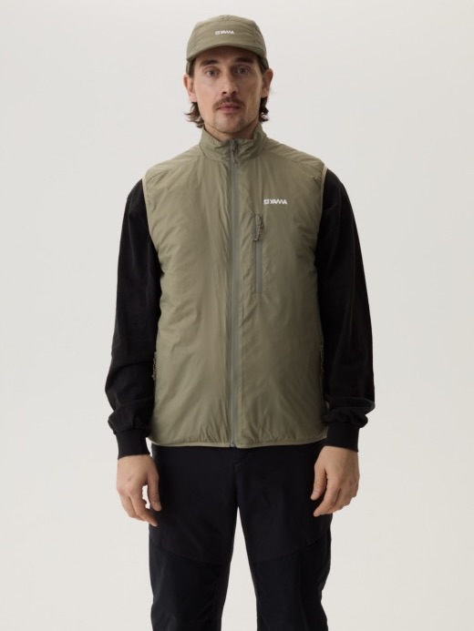 Isolasjon som holder varmen når den er fuktig. Mikro-ripstop-skall blokkerer vind og lett regn. Ermeløs design løser et bevegelsesproblem – kjerneisolasjon uten å begrense skuldre eller armer. Elastiske armbånd gir komfortabel og fleksibel passform. Bruk som mellomlag under jakker eller ytterlag over lange ermer.