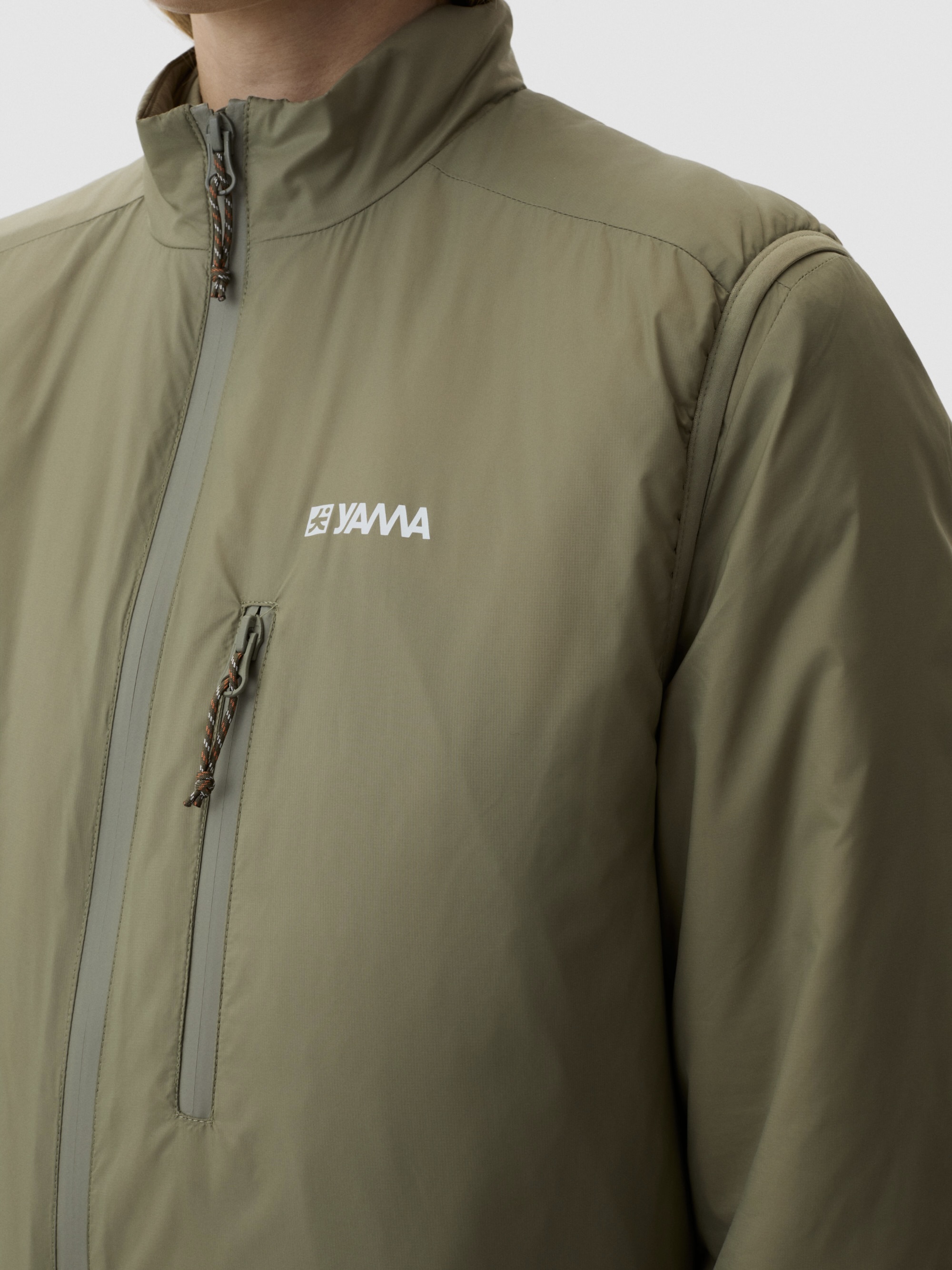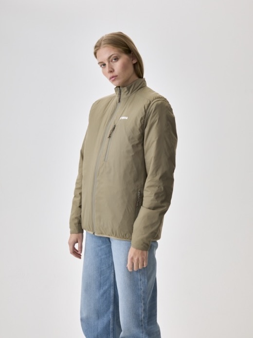 Avsmalnet silhuett sitter tett uten innsnevring. Ståkrage holder kulde ute. Fire glidelåslommer – brystlomme, to hender og en stor baklomme. Vanntette YKK-glidelåser. Rene paneler uten quilting. Diskret design. Høy funksjonell verdi. Designet for gjentatt bruk på tvers av sesonger.