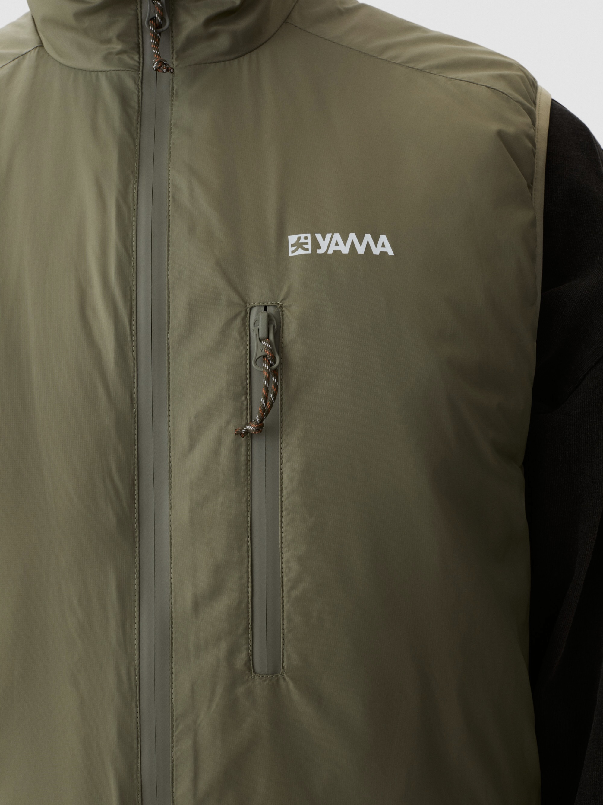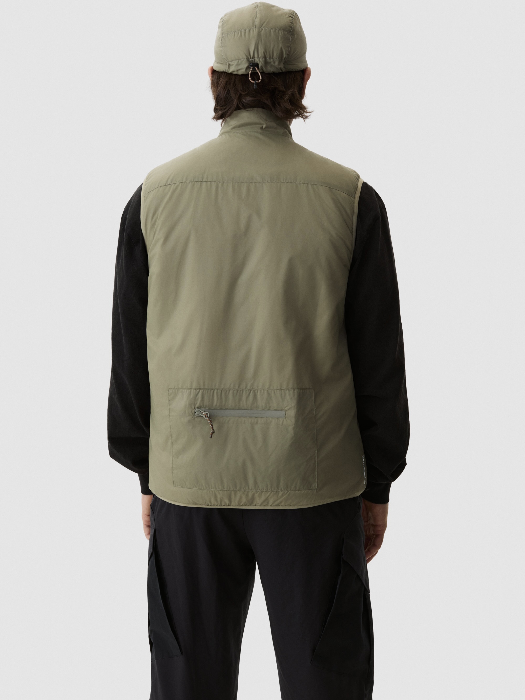 Kjernevarme uten ermer. 60 g PrimaLoft®-isolasjon holder kjernen varm mens armene beveger seg fritt. Elastiske lycra-armbånd følger med. Avsmalnet silhuett. Fire lommer inkludert stor oppbevaring bak. Ståkrage. Vannavvisende skall motstår lett regn. Bygget for overgangsvær.