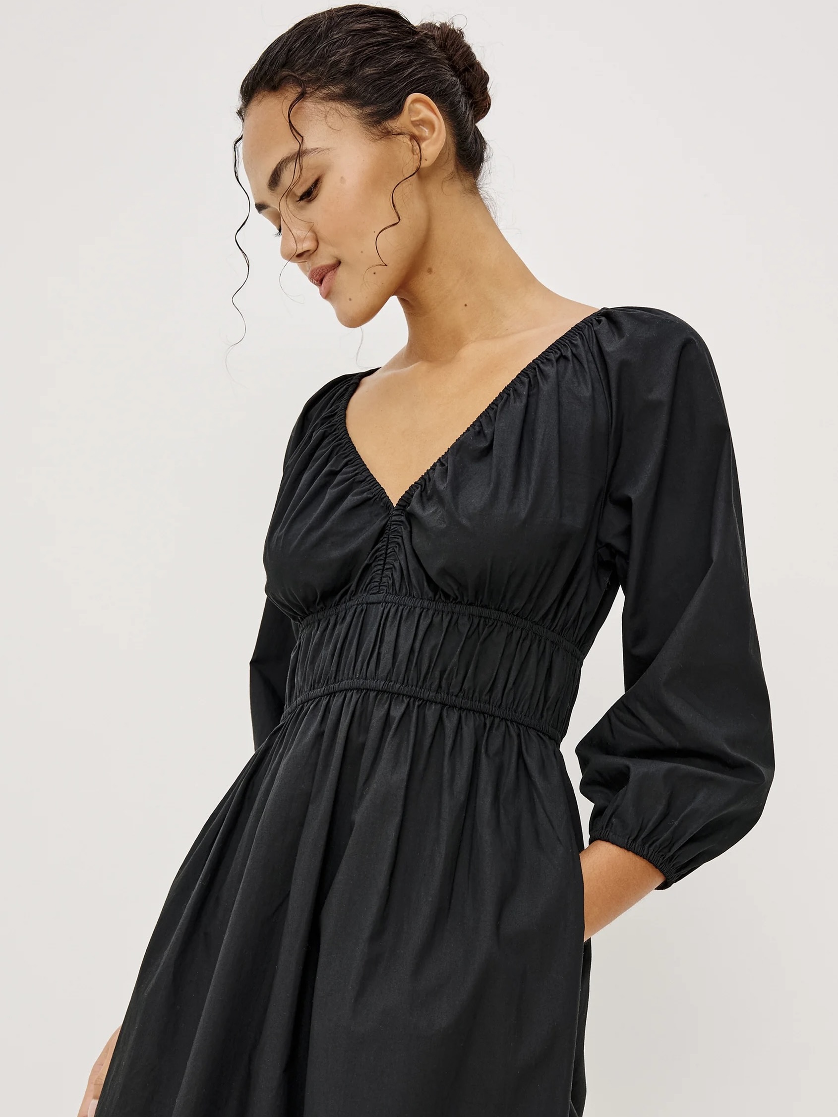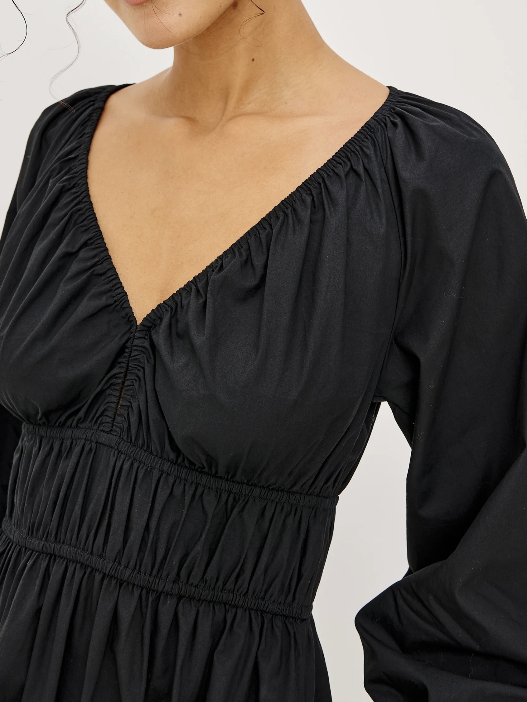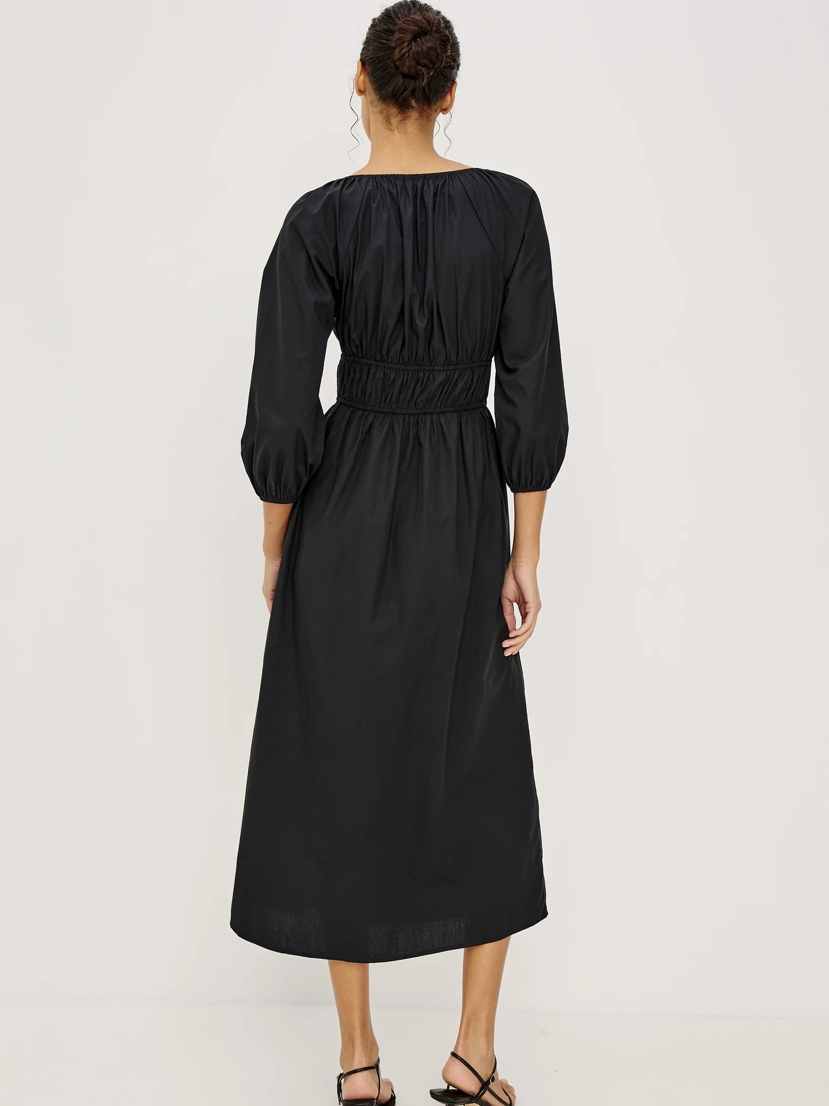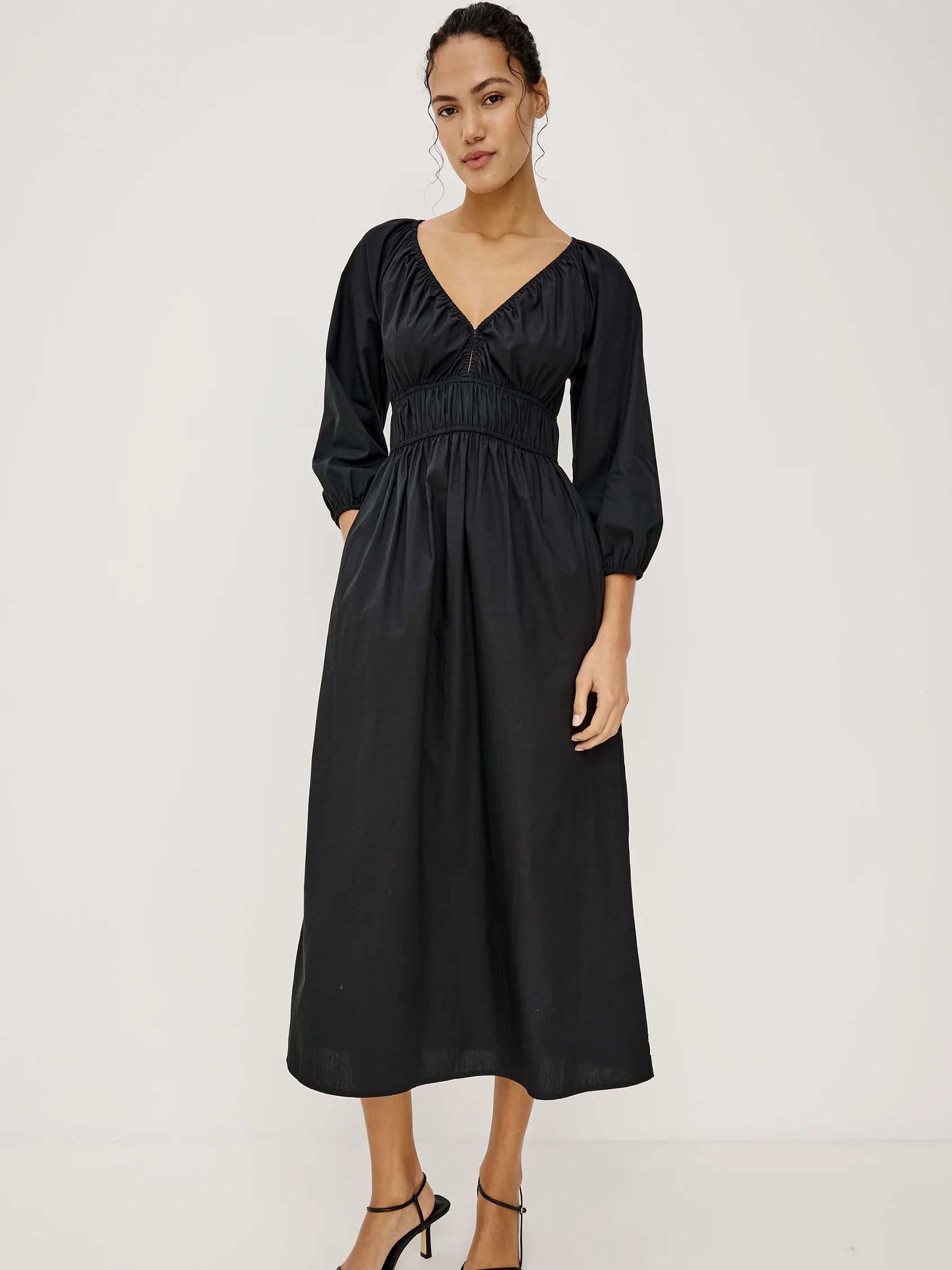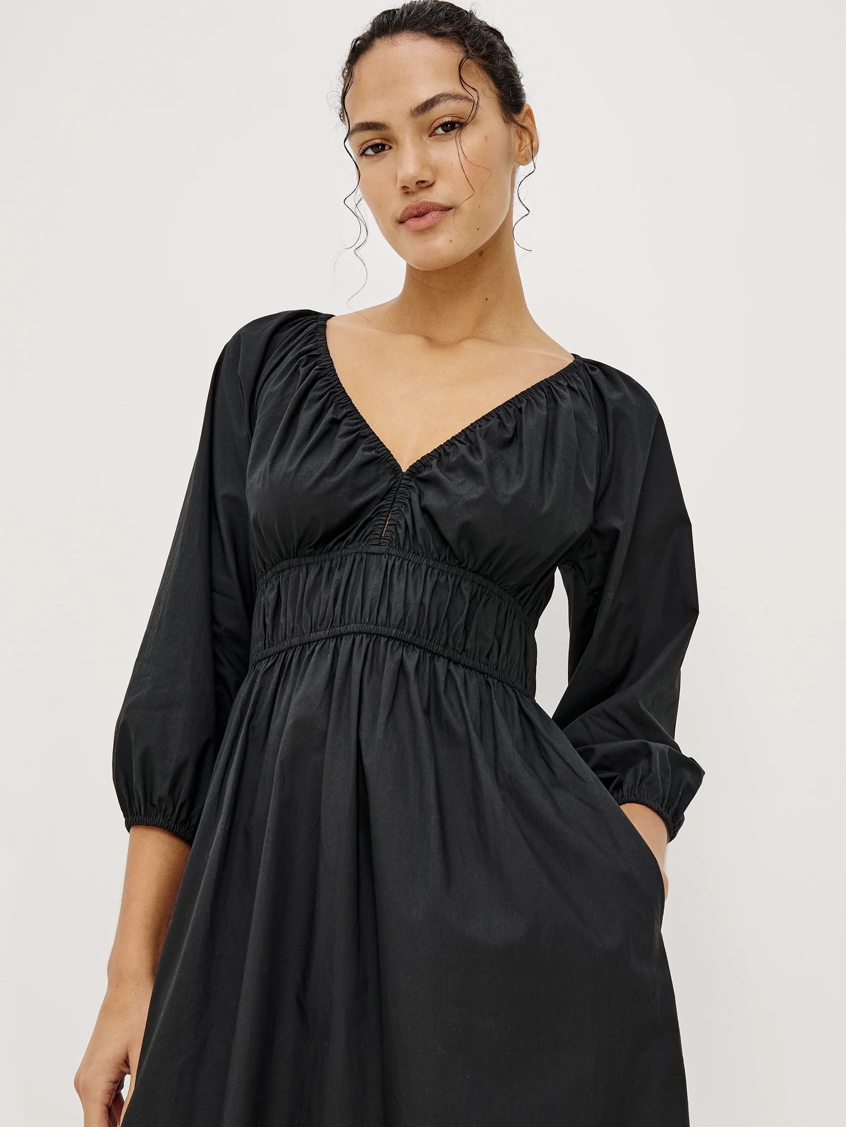 Paio-kjolen har en flatterende passform med en tettsittende overdel og et langt, flagrende skjørt. Lett elastiske ermer som går helt ned til armbåndet og en hektelukking foran gir fleksibilitet, mens heldekkende fôr sikrer komfort hele dagen.