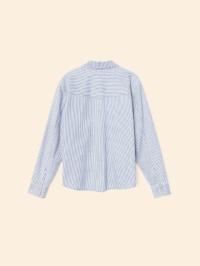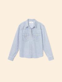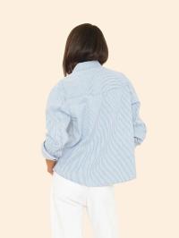 Denim Days. Byron er ny denne sesongen i vår jernbanestripete denim. Byron er en skjorte med knapper foran, perlemorsfargede trykknapper, western-inspirert bærestykke foran og bak, og brystlommer med knappeklaff.