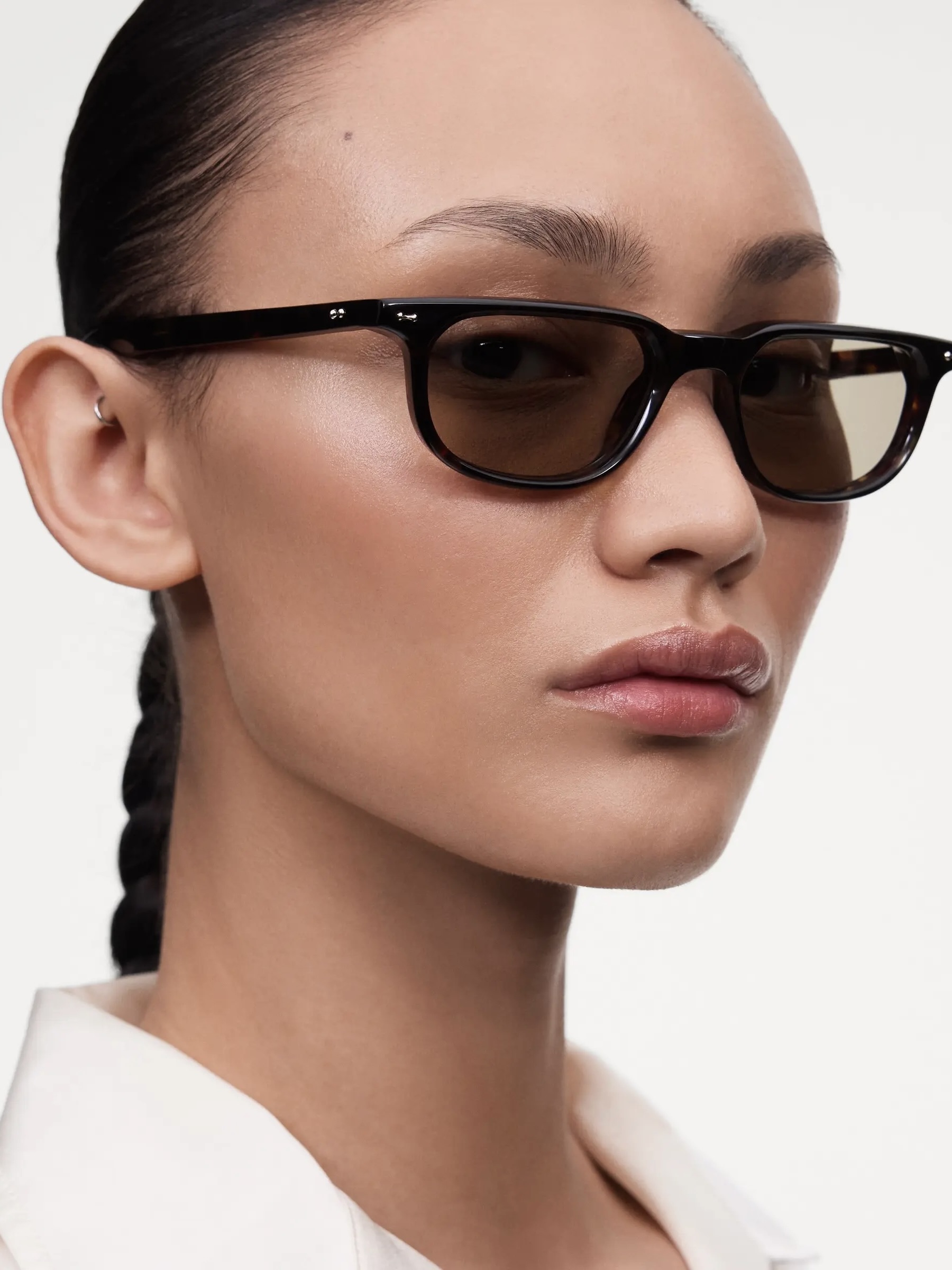 Ikke alle solbriller yter den gylne timen rettferdighet. Novis gjør det. Med en 60-tallsinspirert silhuett, slanke stenger og lystonede glass er de laget for rolige solnedganger og spontane planer. Litt retro, litt mystisk – akkurat passe mengde av begge deler.