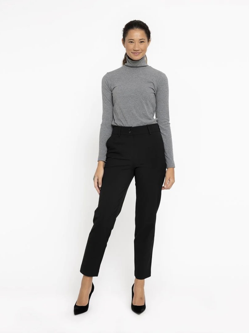 Daphne 285 er bukser med rett passform laget av elegant ensvevet stoff i klassisk design. Med høy midje og ankellengde, formet vi dem for å fremheve midjen og hoftene dine og svaie litt, noe som skaper et lett og livlig utseende – og følelse. En linning, noe høyere enn vanlig og elastisk bak, følger trofast midjens krumning.
