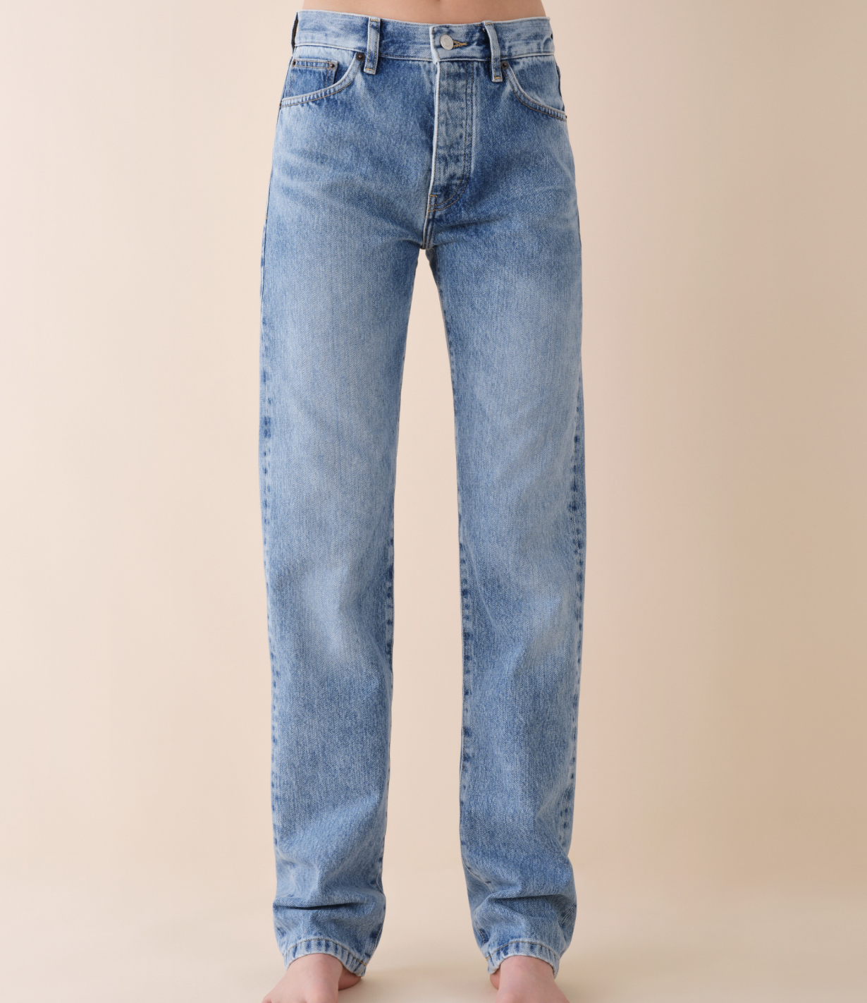 RW005 Rodeo er en vestlig 5-lommers silhuett forhøyet med moderne proporsjoner. Laget i stiv blå denim med mer enn 50 % resirkulert innhold, behandlet for en vintage steinvask-look med høye og lave toner. Med overdrevne baklommer, en klassisk knappgylf og en buet mellomhøy passform som vikler rundt rumpa og midje.