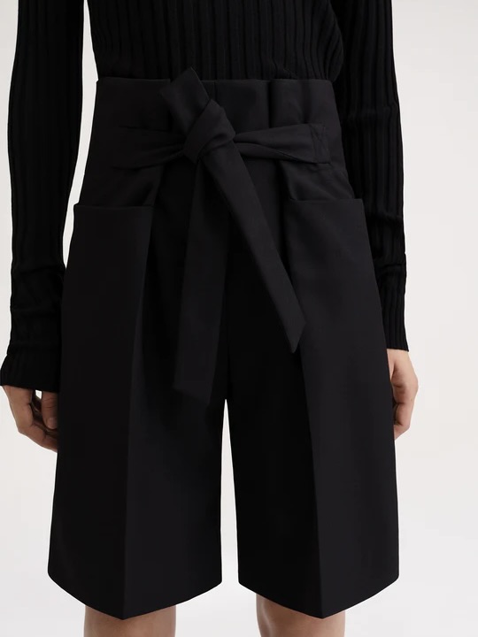 TOTEME Bermuda-shorts med høy midje som er pent foldet og festet med festet knytebånd. De har en skarp knelang silhuett med tre lommer og trykkfoldede ben – alle laget av mellomvekt grain de poudre. Style dem med en innstoppet topp eller genser.