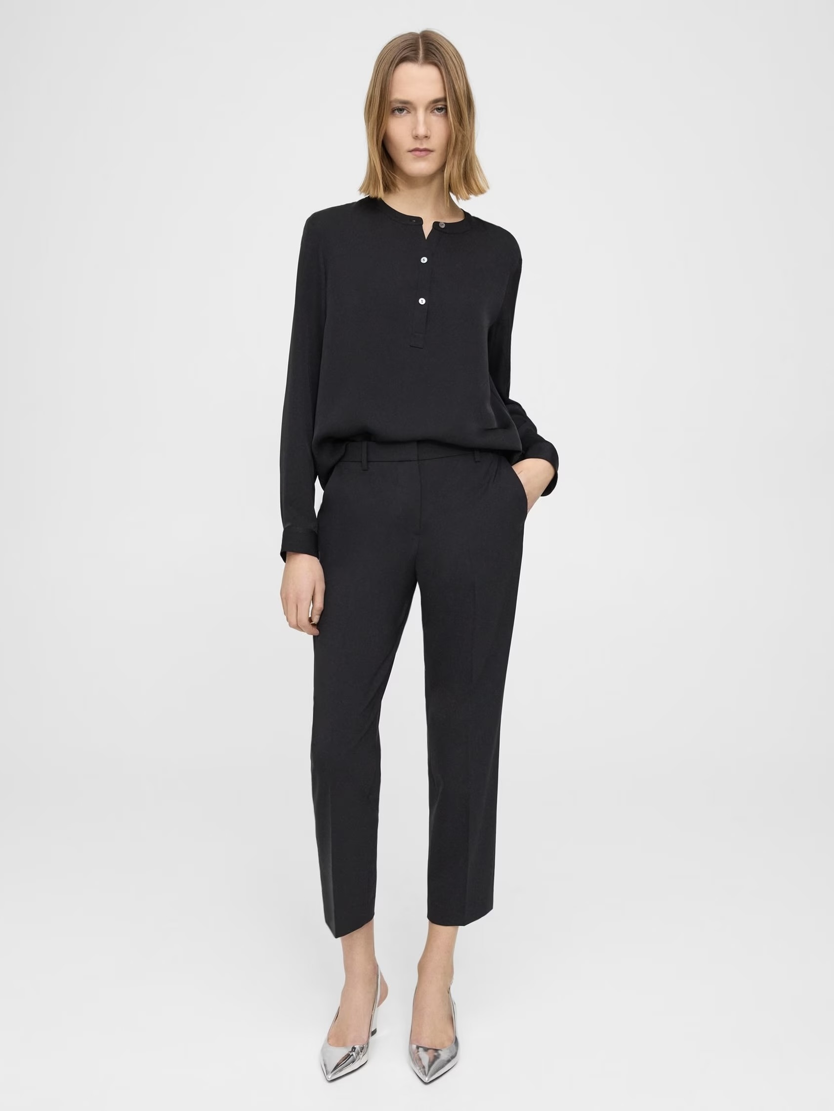 Denne avkortede buksen er en utpreget Theory favoritt, og er skreddersydd i vår bestselgende Treeca-passform. Den er kuttet av et fint, middels tungt ull som passer stoff. Med iboende fuktighetskontroll er dette stoffet rynkebestandig for polering hele dagen.